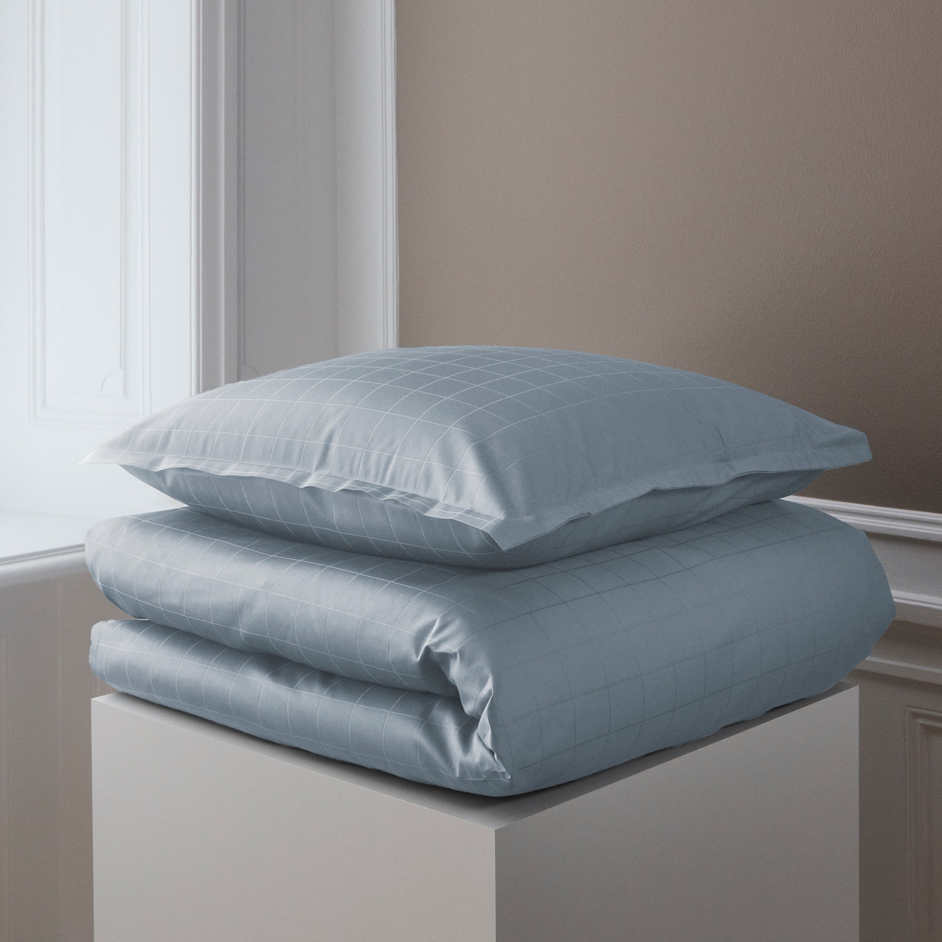 Even sengetøj i hør og bomuld. Vævningen forener hørfibrenes smukke tekstur med bomuldens delikate blødhed.