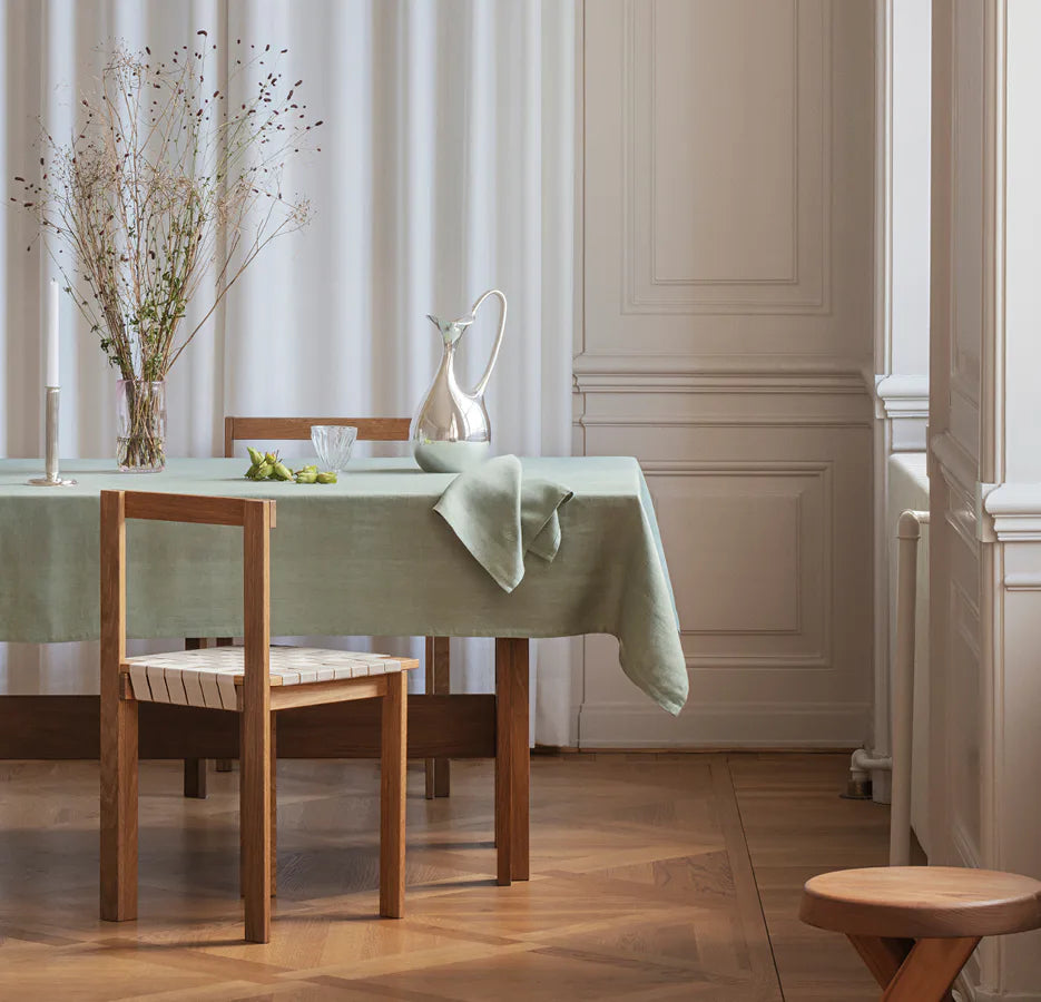 Hos Georg Jensen Damask har vi vores egen systue, hvor vi syer tekstiler i specialmål. Har du brug for en længere dug eller et bredere dynebetræk, tråder vi hellere end gerne nålen.