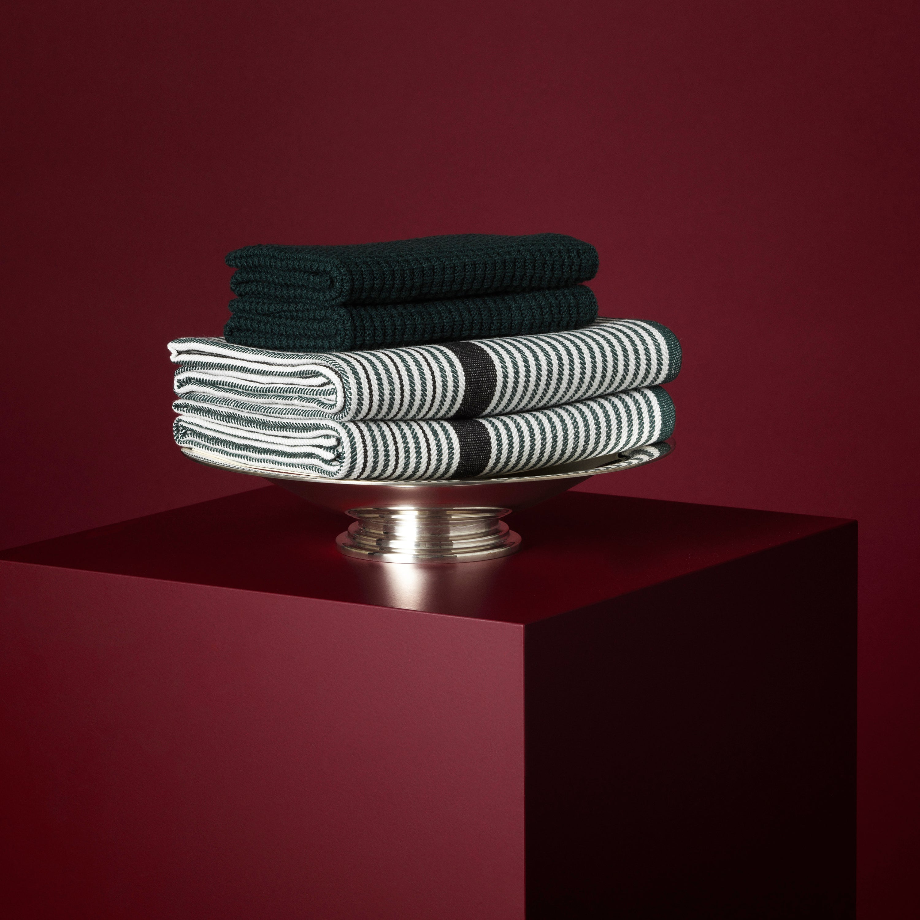 Få køkkenpakken med 2 stk. Comet viskestykker og 2 stk. 3PLY karklude i farven Evergreen.