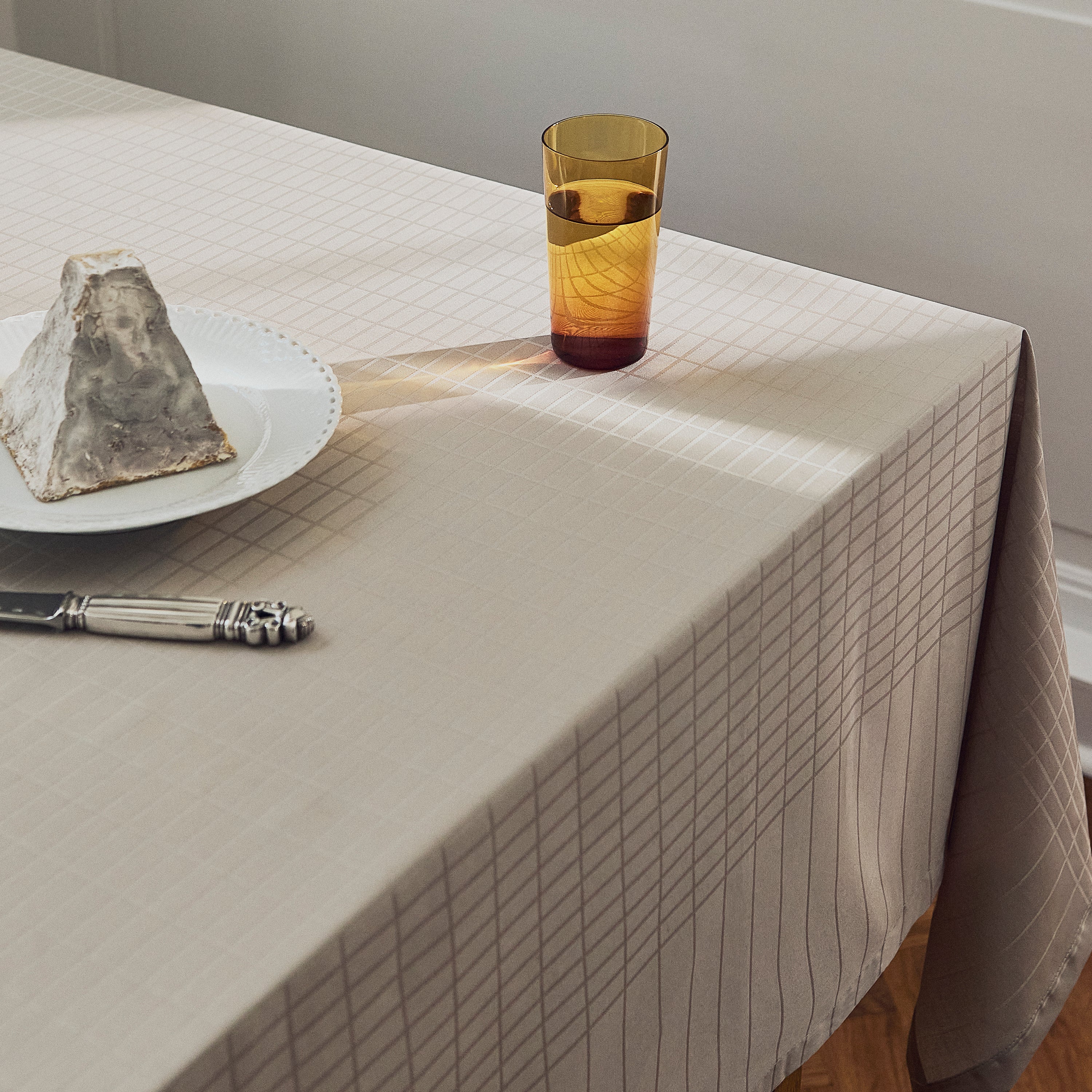 Dæk et smukt bord med den populære dug Classic Lines. Dugen er satinvævet i 100 % bomuld og har en coated overflade, der gør den vand- og smudsafvisende. Elegant og praktisk.