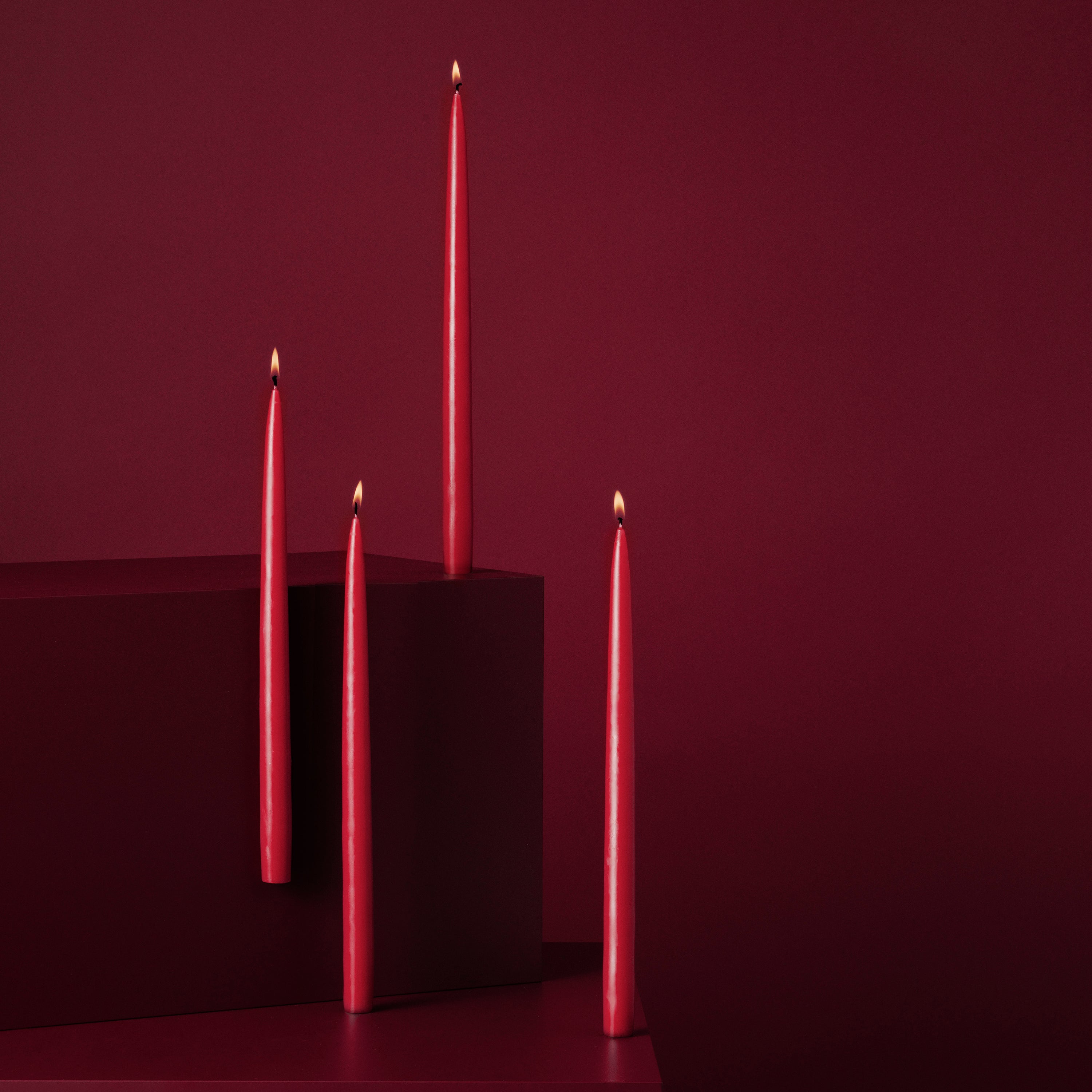 Få en pakke med 4 stk. stearinlys. Vælg mellem 8 smukke farver.