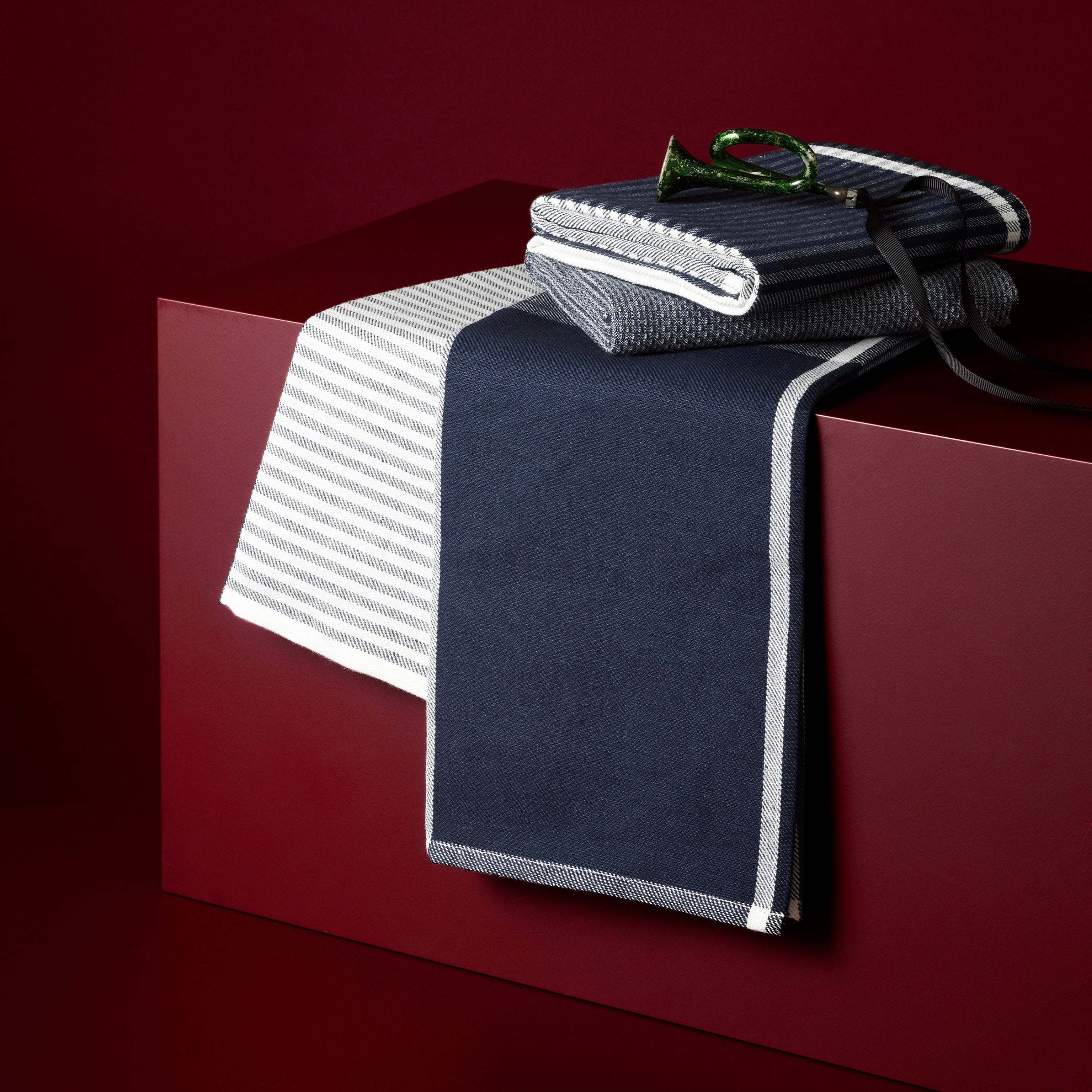Comet er et stribet viskestykke, der er vævet i en blanding af bomuld og hør, der giver det optimale tørreegenskaber. 3PLY karkluden er strukturstrikket i 100 % bomuld.