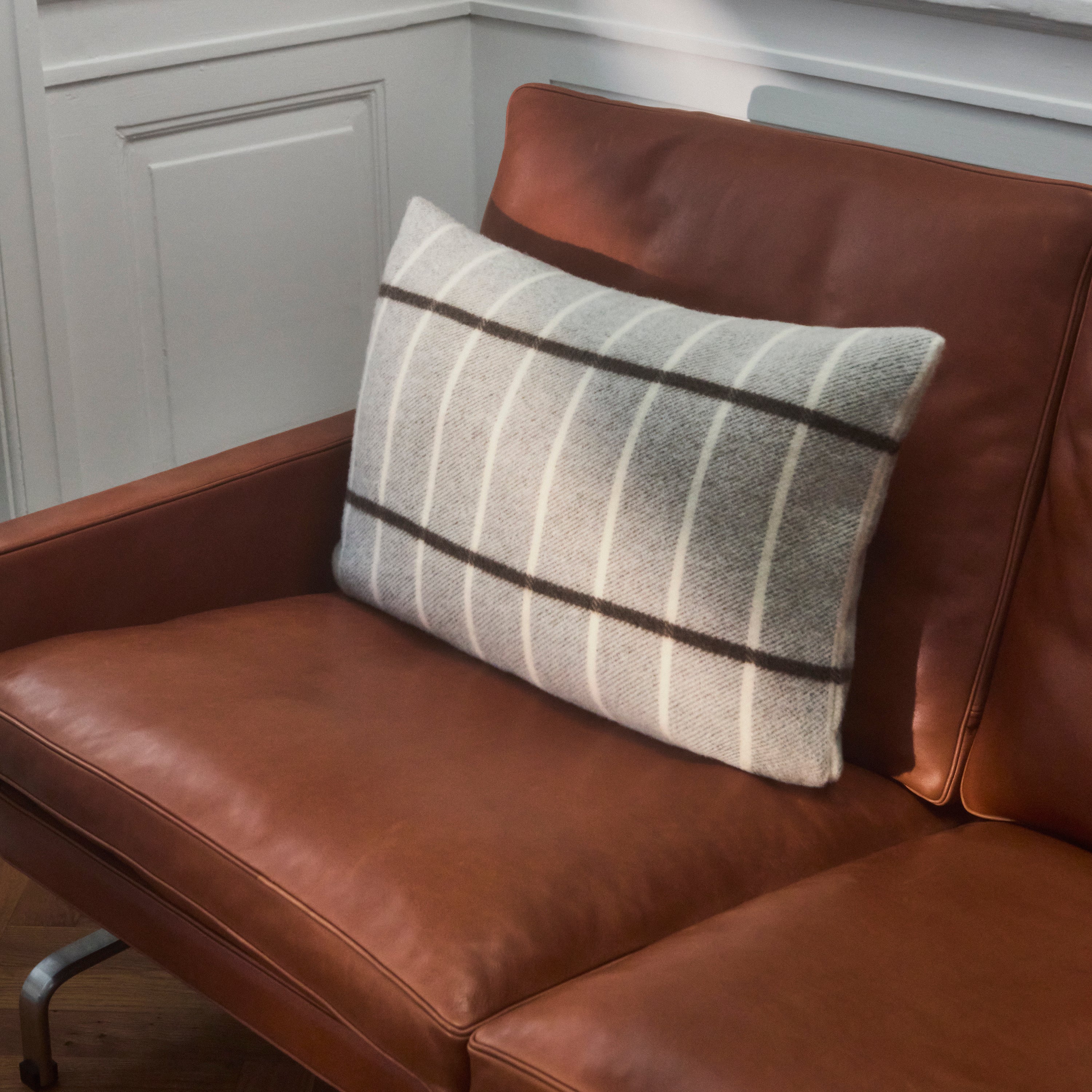 Tartan puden har et klassisk ternet mønster. Kombination af 90 % merinould og 10 % cashmere gør puden ekstra blød og uldens fine struktur tilføjer en særlig lethed.