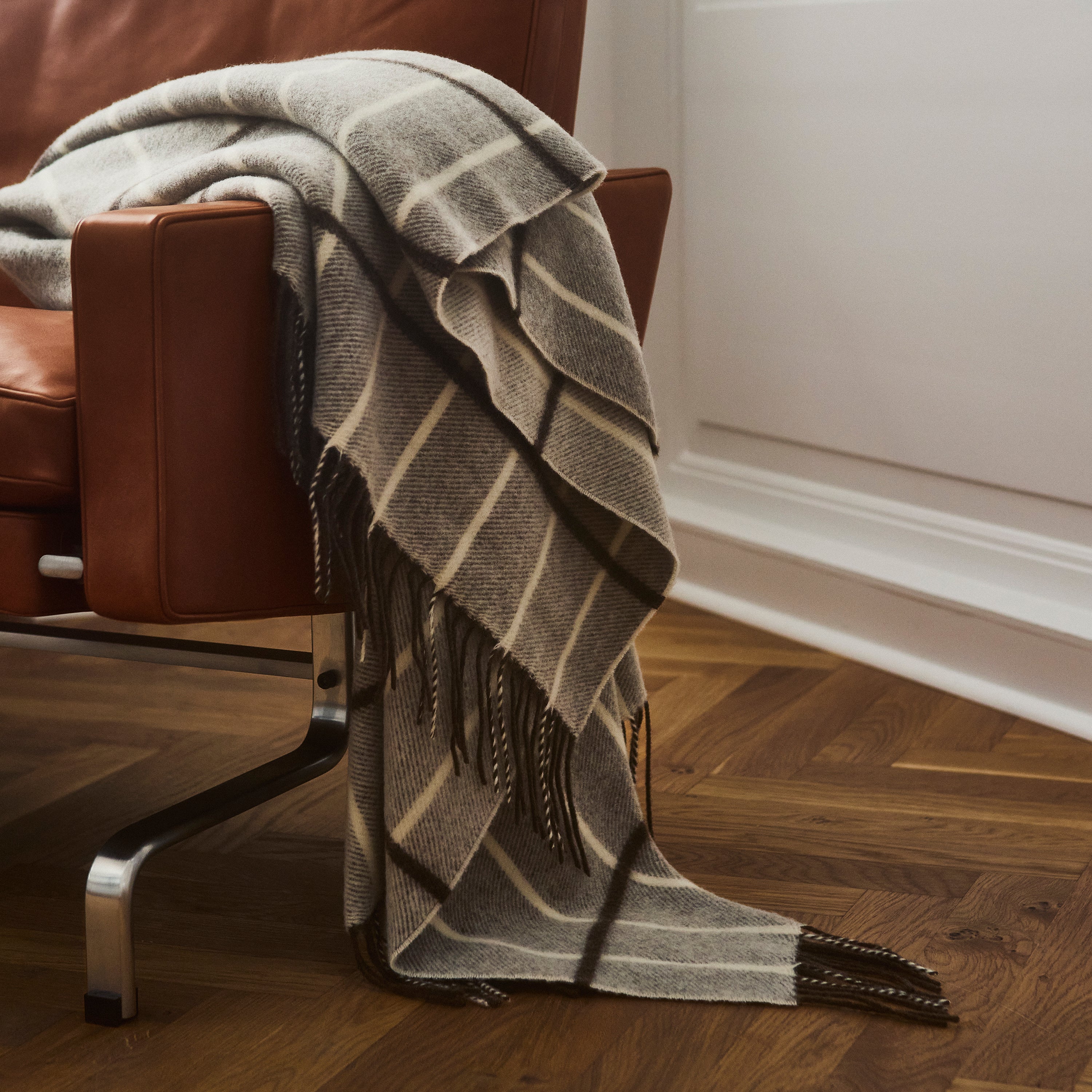Tartan plaiden har et elegant, ternet mønster. Tartan er vævet i 90 % merinould og 10 % cashmere, som får den til at holde godt på varmen og gør den perfekt at lune sig med.