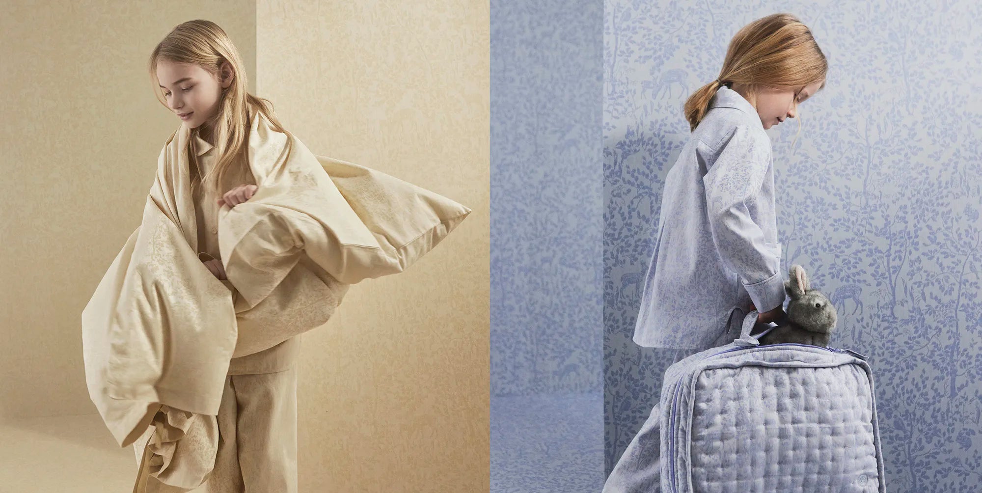 Put poderne i en skov af eventyr. Georg Jensen Damasks Forest-serie har et elegant jacquardvævet motiv af dådyr, kaniner og fugle, der boltrer sig mellem nyudsprungne træer. En verden, der passer ekstra godt til børn. I kollektionen finder du nattøj, sengetøj, babytæppe og kuffert til de mindste.