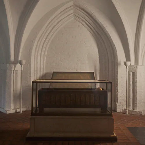 Som noget ganske særligt har Georg Jensen Damask haft mulighed for at fotografere Sct. Knuds Ørne-dug i Odense Domkirke, hvor det snart 1000 år gamle tekstil er udstillet.