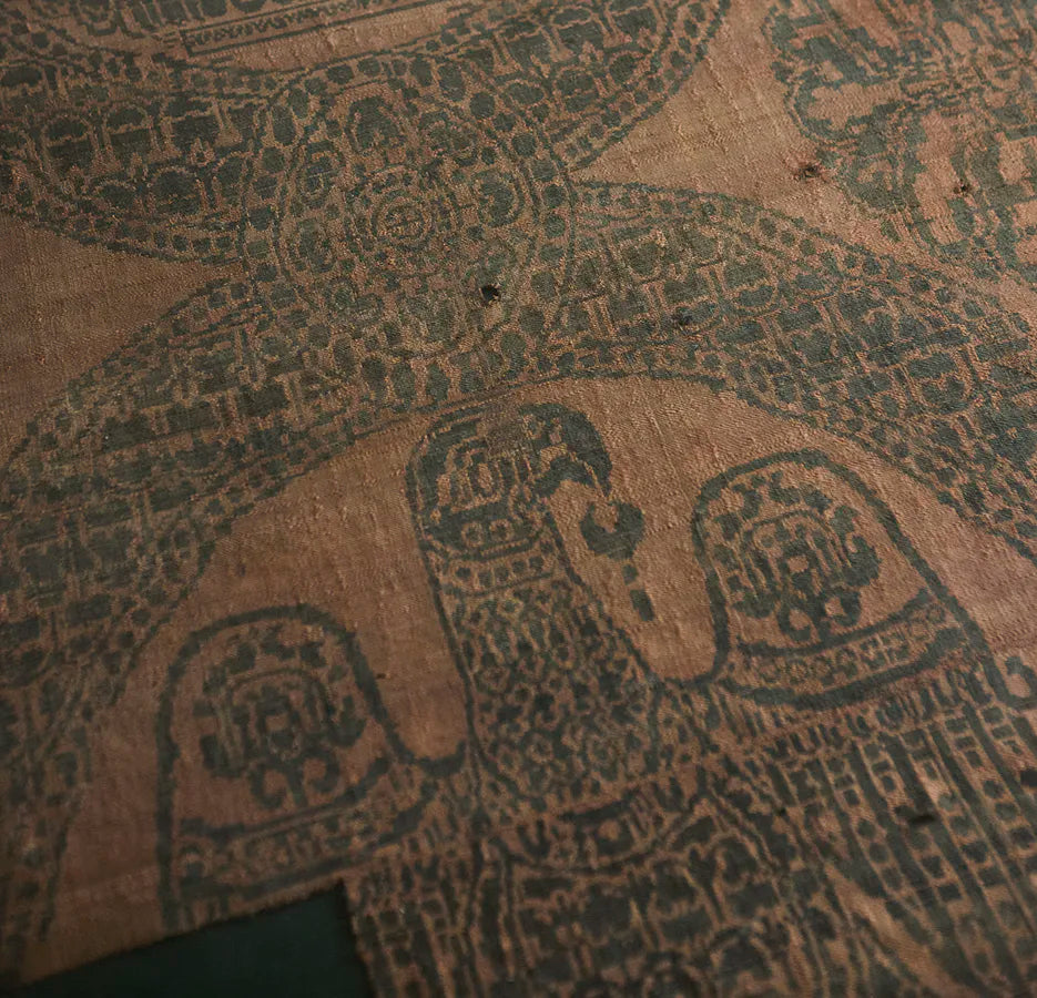 Som et symbol på kongemagten er klædet, der menes at stamme fra Byzans, dekoreret med et motiv af ørnen, der med sin gavmildhed altid lader noget tilbage, når den spiser. Ørnen holder et halvmåneformet smykke i næbet og har sine vinger halvt udfoldet. Den er omkranset af et ovalt medaljonformet arabeskmønster.