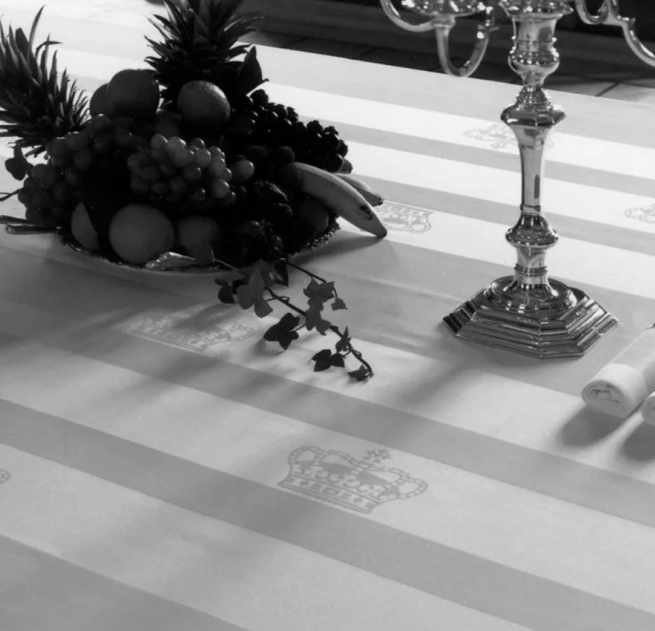 At H.M. Dronning Margrethe altid har værdsat smukt vævearbejde blev slået fast i hendes dialog med Bjørn Nørgaard om gobelinerne til Christiansborg Slot, hvor Georg Jensen Damask blev betroet at væve Riddersalens øvrige tapeter og tekstiler. Som virksomhed er det en stor ære at være med, når der skabes dansk kulturhistorie, og det er der i høj grad blevet i H.M. Dronning Margrethe 2.’s regentperiode.