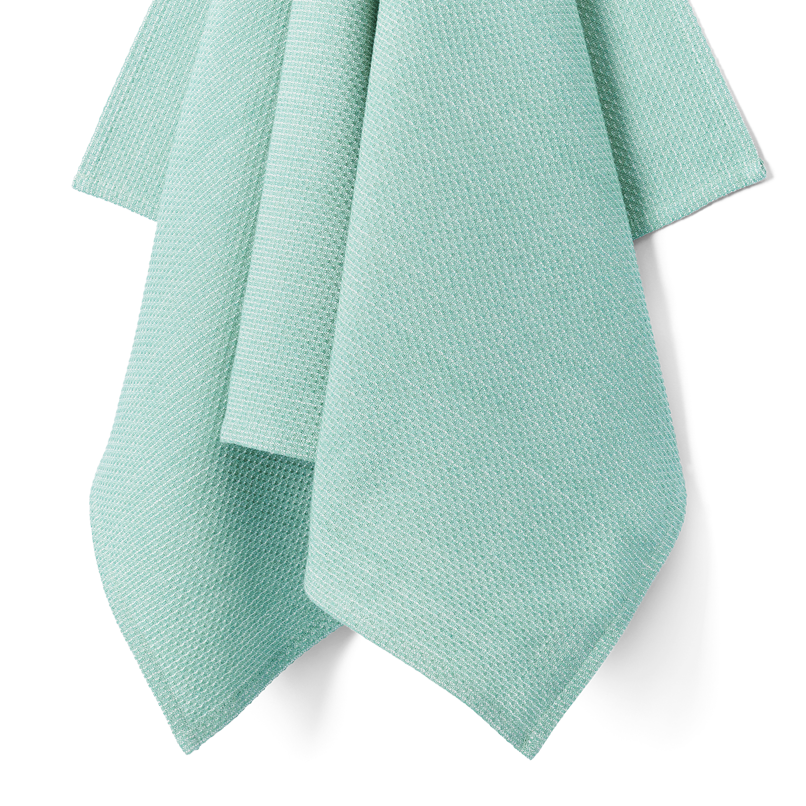 1959 er et klassisk, vævet køkkenhåndklæde i blød bomuld. Køkkenhåndklædets særlige, vaflede struktur sikrer en optimal tørreevne, og den kraftige kvalitet gør det muligt at bruge det både som håndklæde og viskestykke. Den klare, blågrønne farve, Deep Glass, er inspireret af farven på råglas.