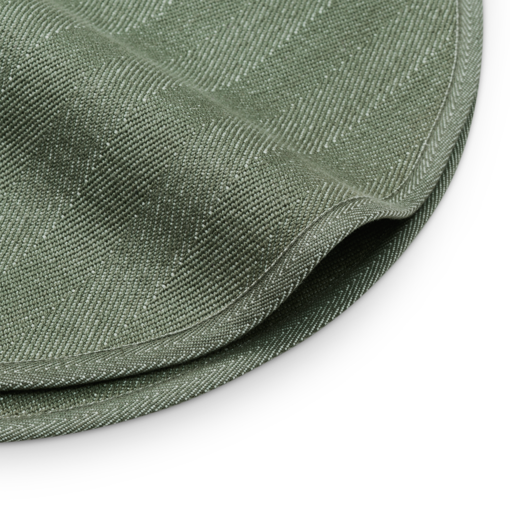 Den runde Herringbone dækkeserviet er en sildebensvævet dækkeserviet i 100 % bomuld. Dækkeservietten ligger godt på bordet og har et lille broderet Georg Jensen Damask-logo. Varianten Mineral Green er en lysegrøn forårsbebuder.