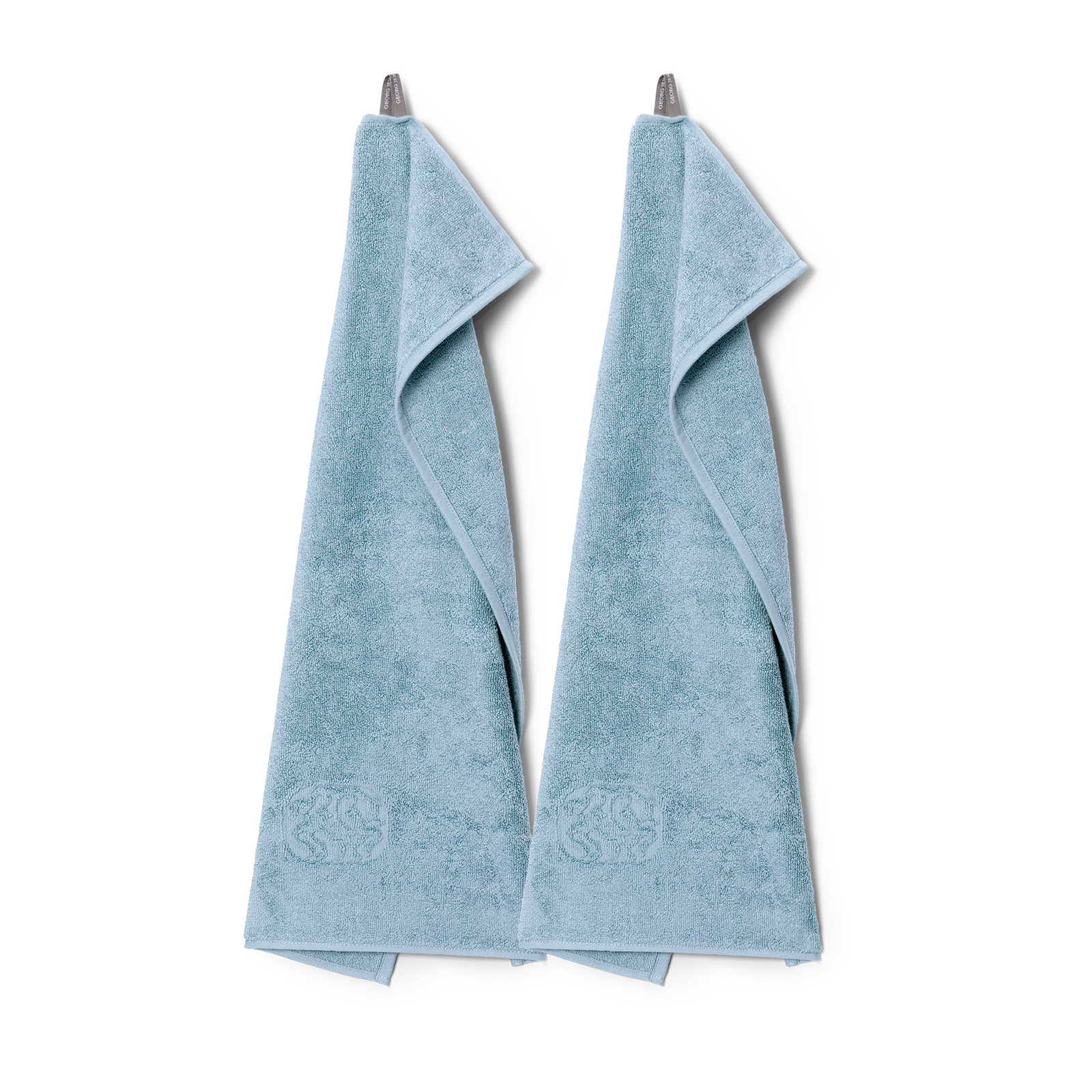 2 stk. Damask Terry gæstehåndklæder i farven Blue Hour – en smuk og tidløs, mellemblå farve. Gæstehåndklæderne har et enkelt udtryk med Georg Jensen Damasks ikoniske logo indvævet som elegant detalje.