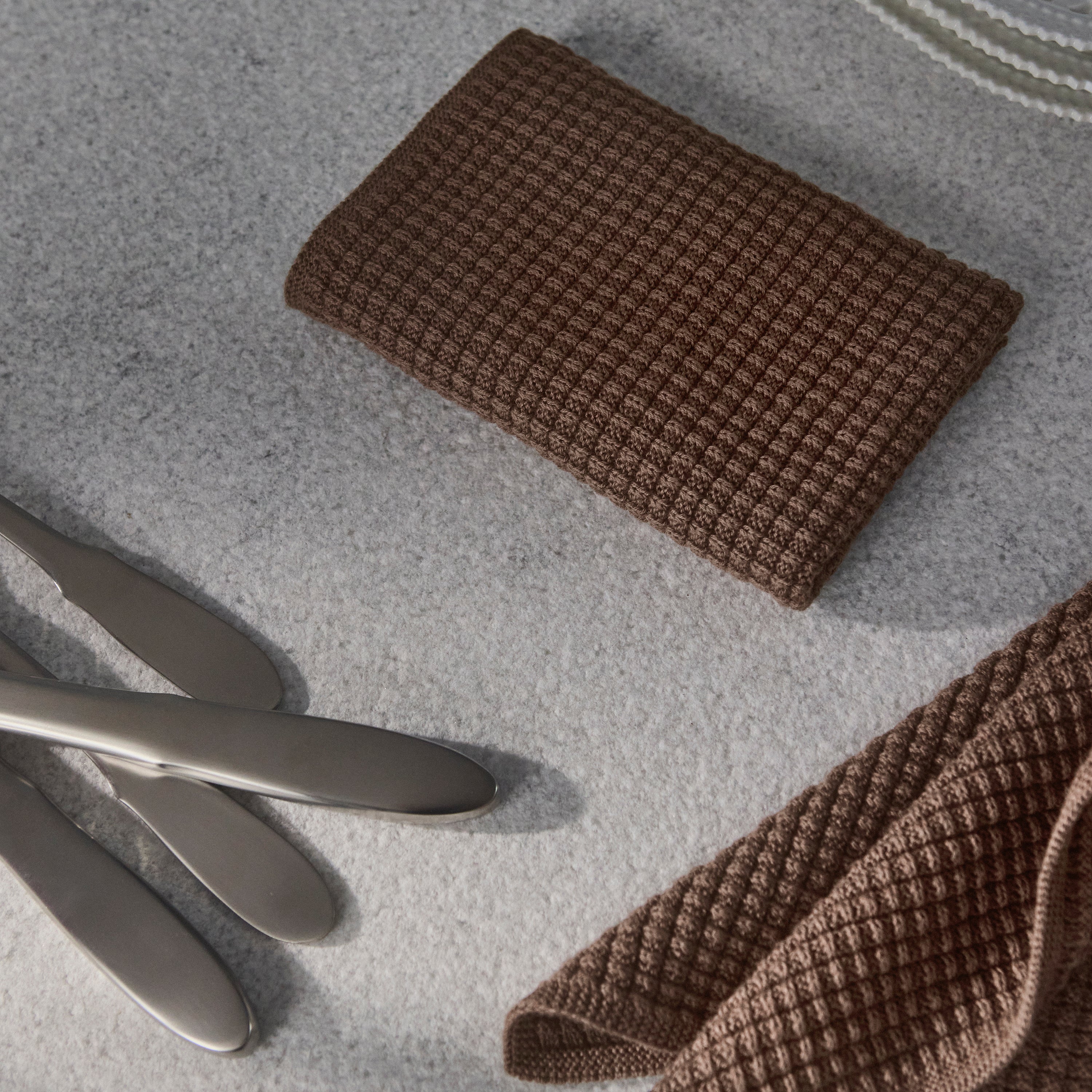 Strukturstrikket karklud i 100 % bomuld. Walnut er en nøddebrune farve, der trækker på naturens egen farverigdom.