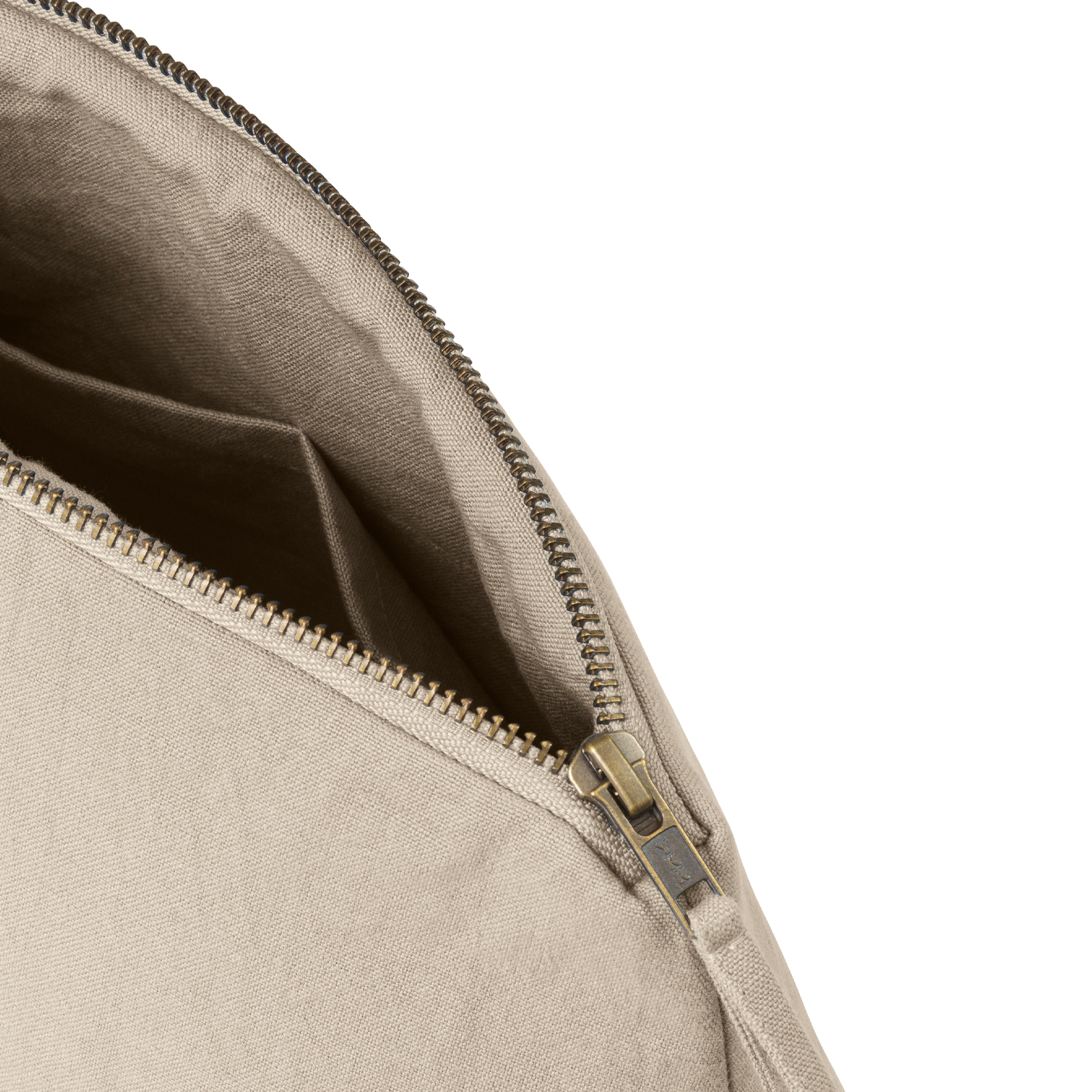 Den funktionelle og rummelige toilettaske og kosmetikpung er lærredsvævet i 100 % bomuld med en indre lomme og har Georg Jensen Damasks logo broderet som elegant detalje.