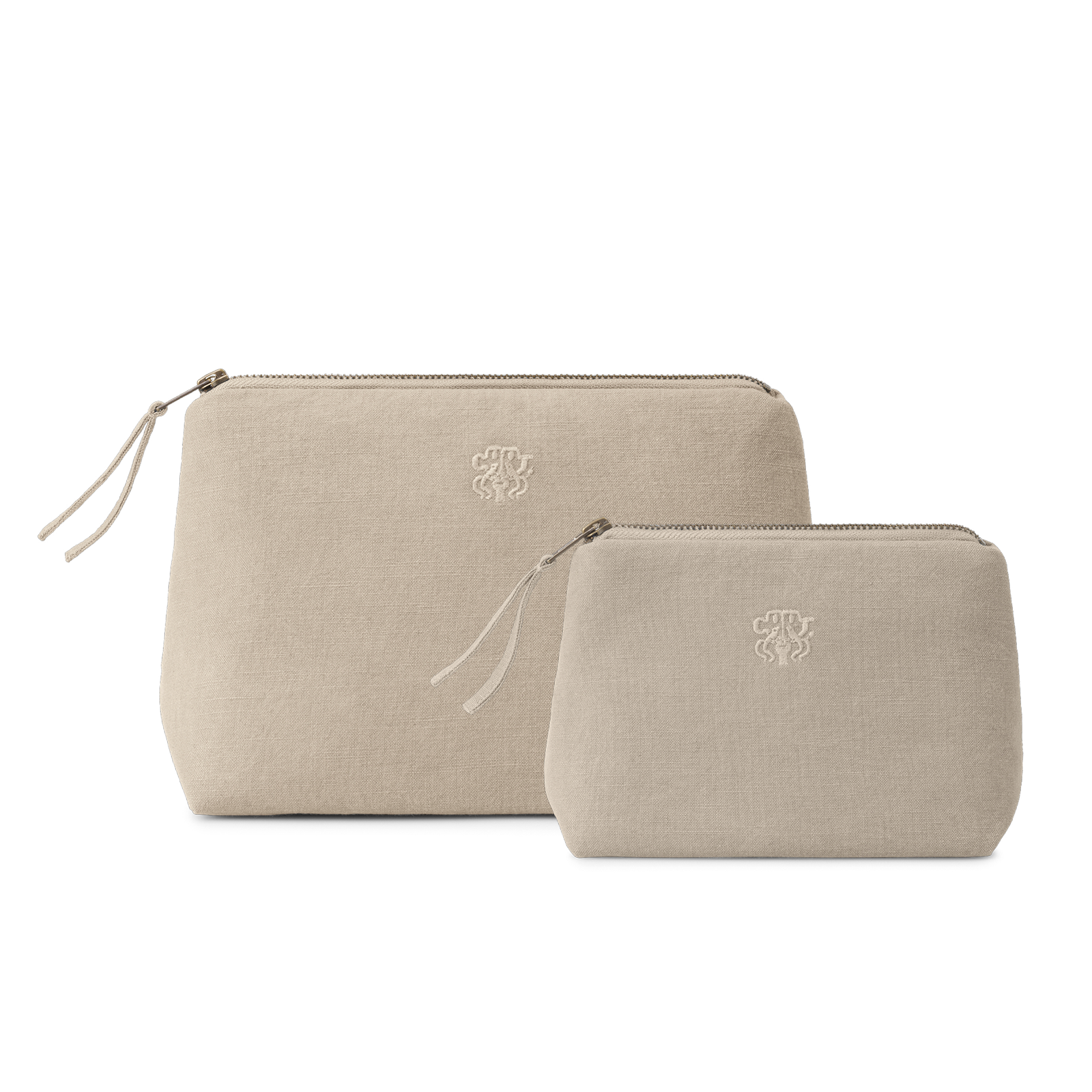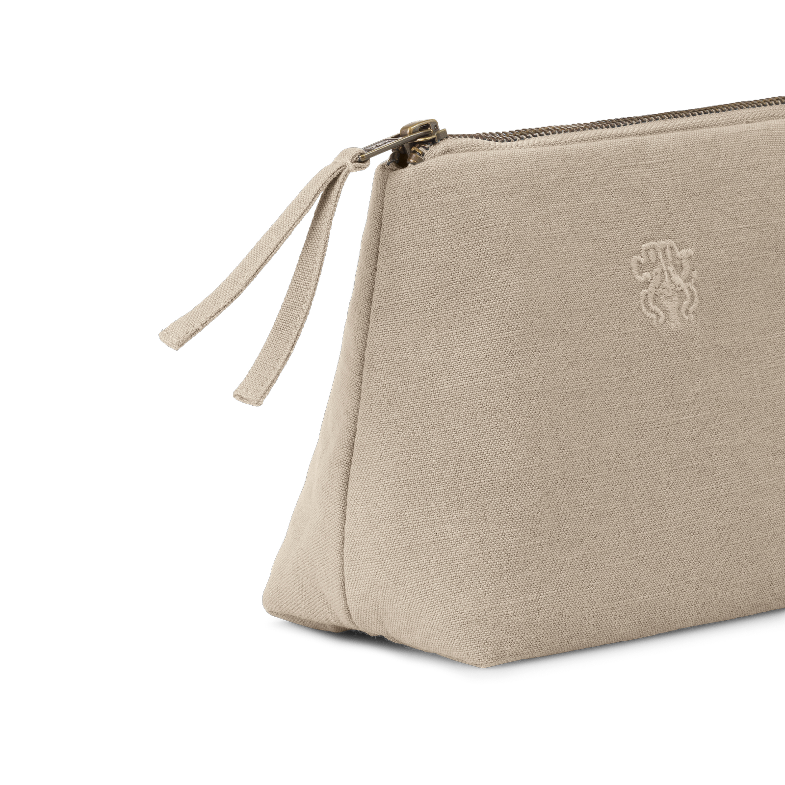 Den funktionelle og rummelige toilettaske og kosmetikpung er lærredsvævet i 100 % bomuld med en indre lomme og har Georg Jensen Damasks logo broderet som elegant detalje.