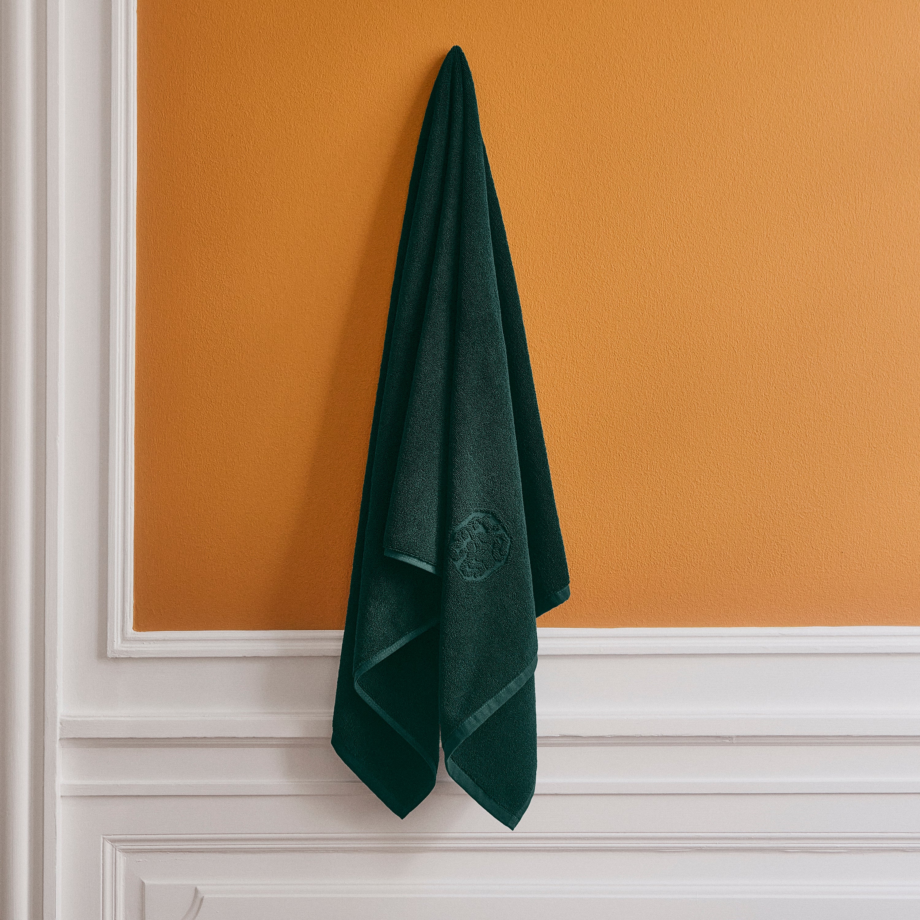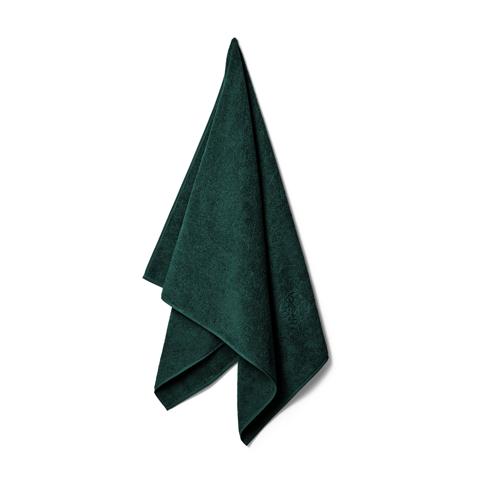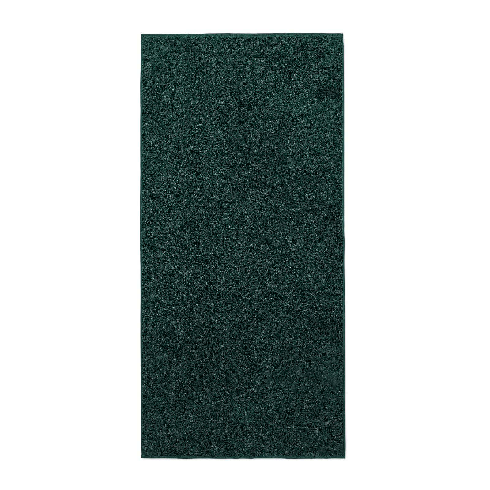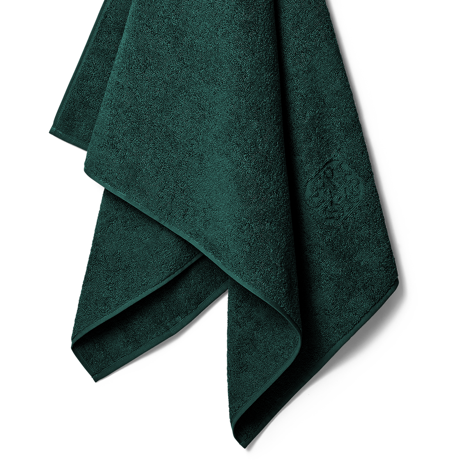 Damask Terry badehåndklædet har et enkelt udtryk med Georg Jensen Damasks ikoniske logo indvævet som elegant detalje. Evergreen er en helt mørk og kølig grøn. Klassisk og sofistikeret.