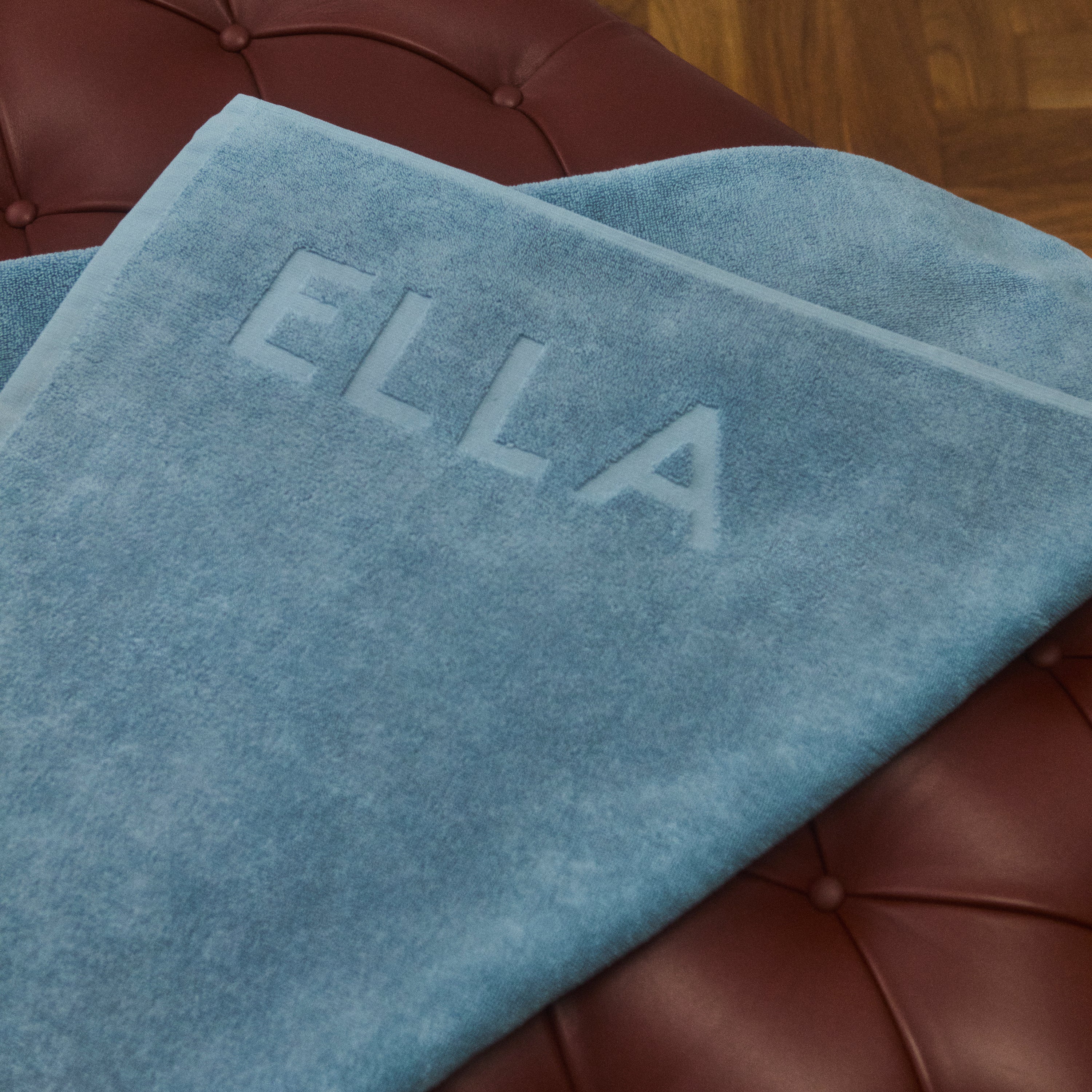 Få et helt personligt badehåndklæde med dit navn indvævet i frotté. Damask Terry navnehåndklædet er jacquardvævet i 100 % dobbelttvundet, kæmmet bomuld med bogstaver i relief. Det elegante håndklæde er både blødt, glansfuldt og slidstærkt. Den elegante farve, Blue Hour, er en smuk og tidløs, mellemblå farve. Et smukt og personligt håndklæde, der også er perfekt som gave.