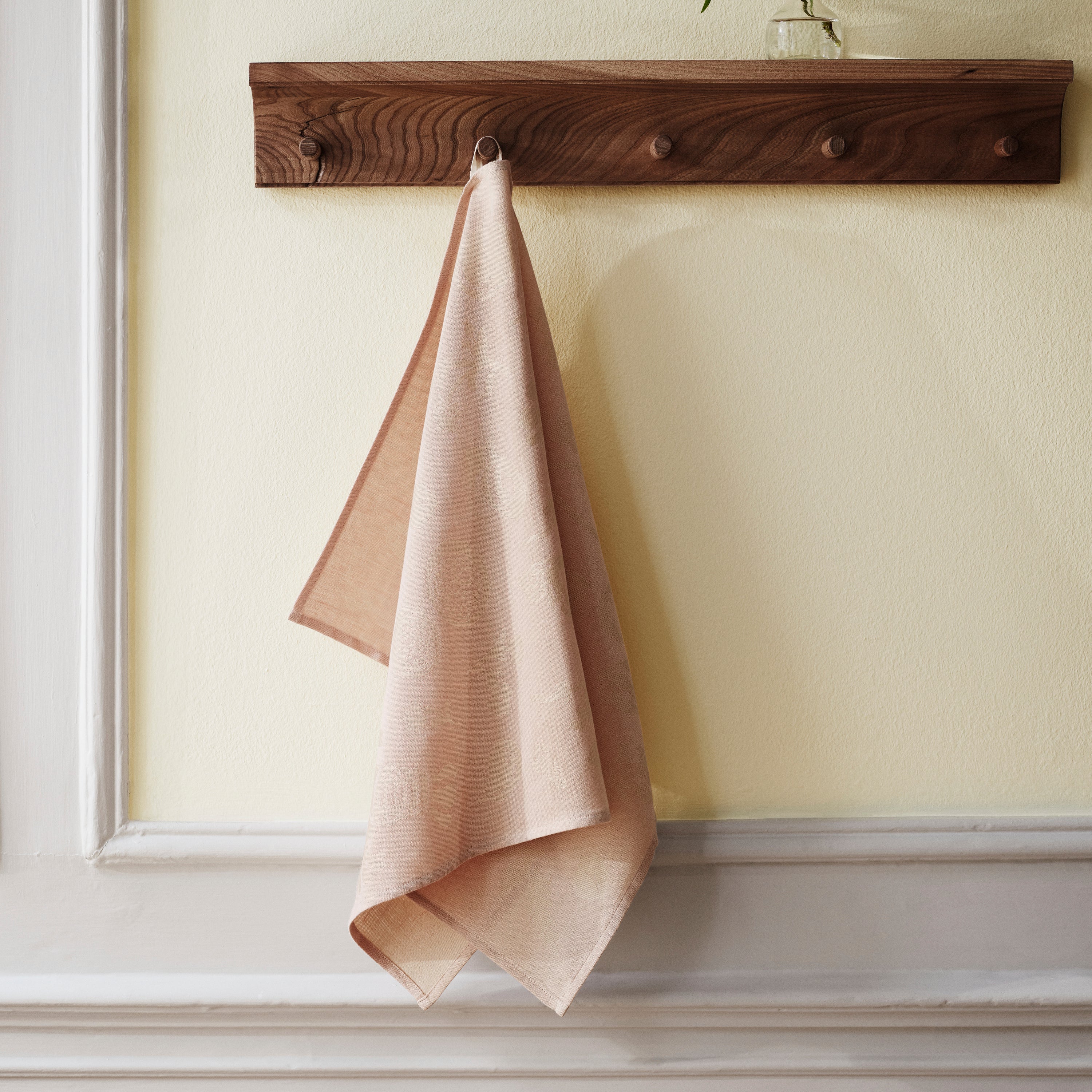 Banquet-viskestykket er enkelt og elegant med indvævede motiver hentet fra renæssancemåltidet. Viskestykket har en høj tørreevne, det er damaskvævet i 50 % bomuld og 50 % hør og fås blandt andet i farven Soft Rose.