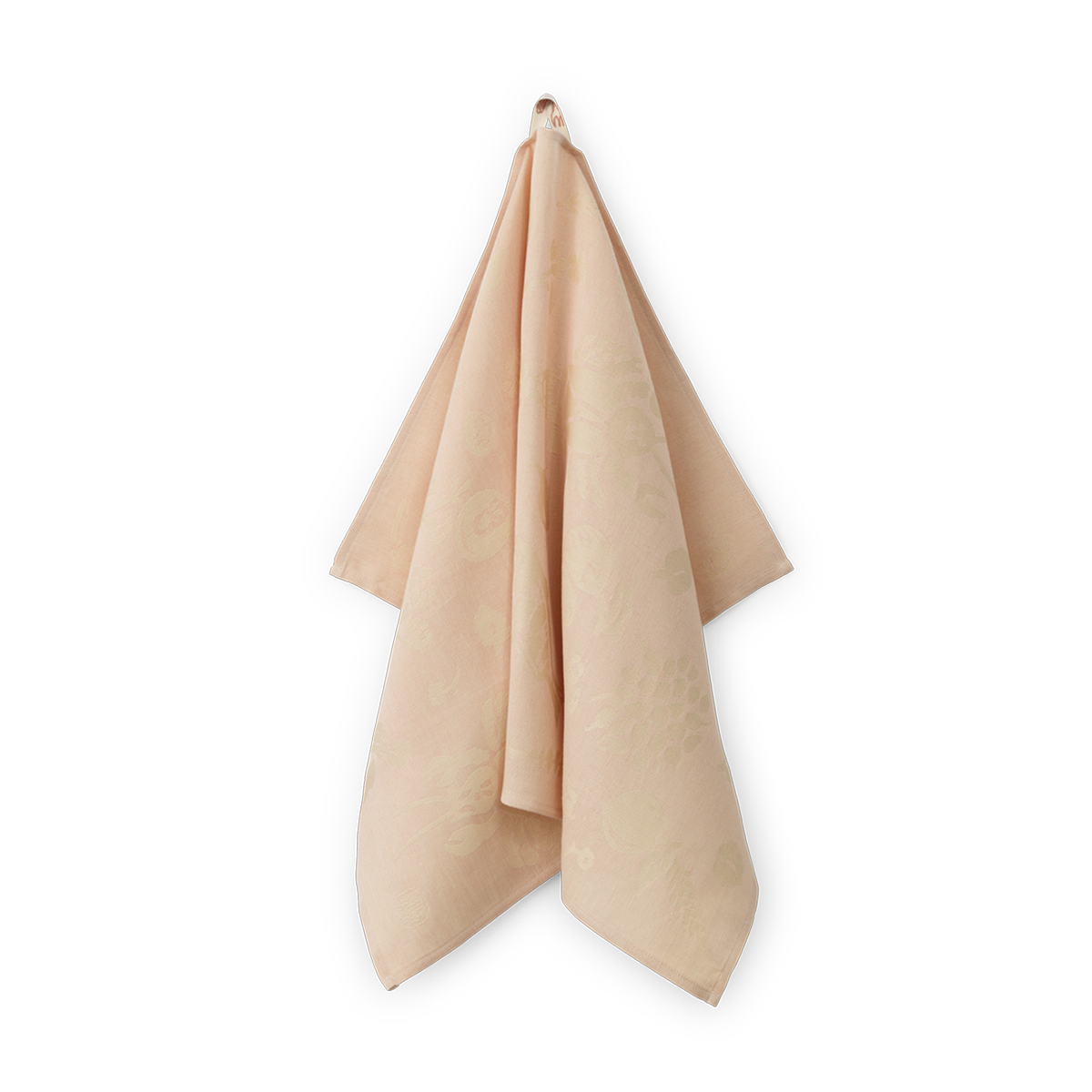 Banquet-viskestykket er enkelt og elegant med indvævede motiver hentet fra renæssancemåltidet. Viskestykket har en høj tørreevne, det er damaskvævet i 50 % bomuld og 50 % hør og fås blandt andet i farven Soft Rose.