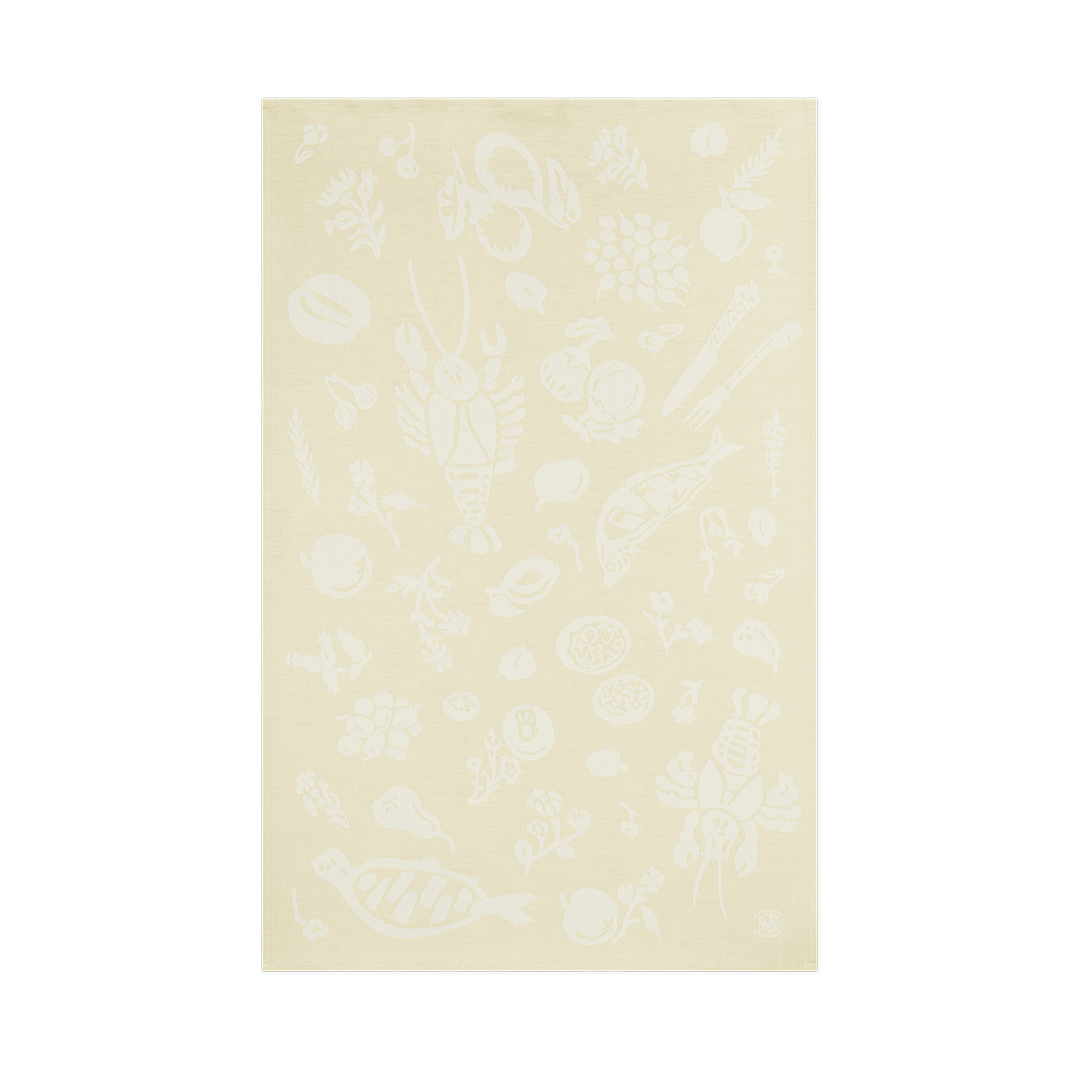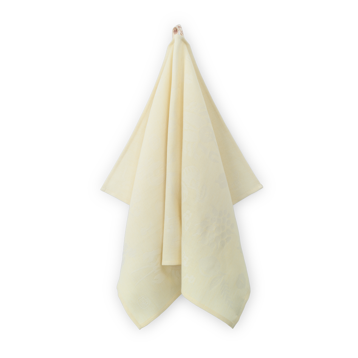 Banquet-viskestykket er et enkelt og elegant viskestykke med indvævede motiver hentet fra renæssancemåltidet. Viskestykket har en høj tørreevne, det er damaskvævet i 50 % bomuld og 50 % hør og fås blandt andet i farven Pale Yellow.