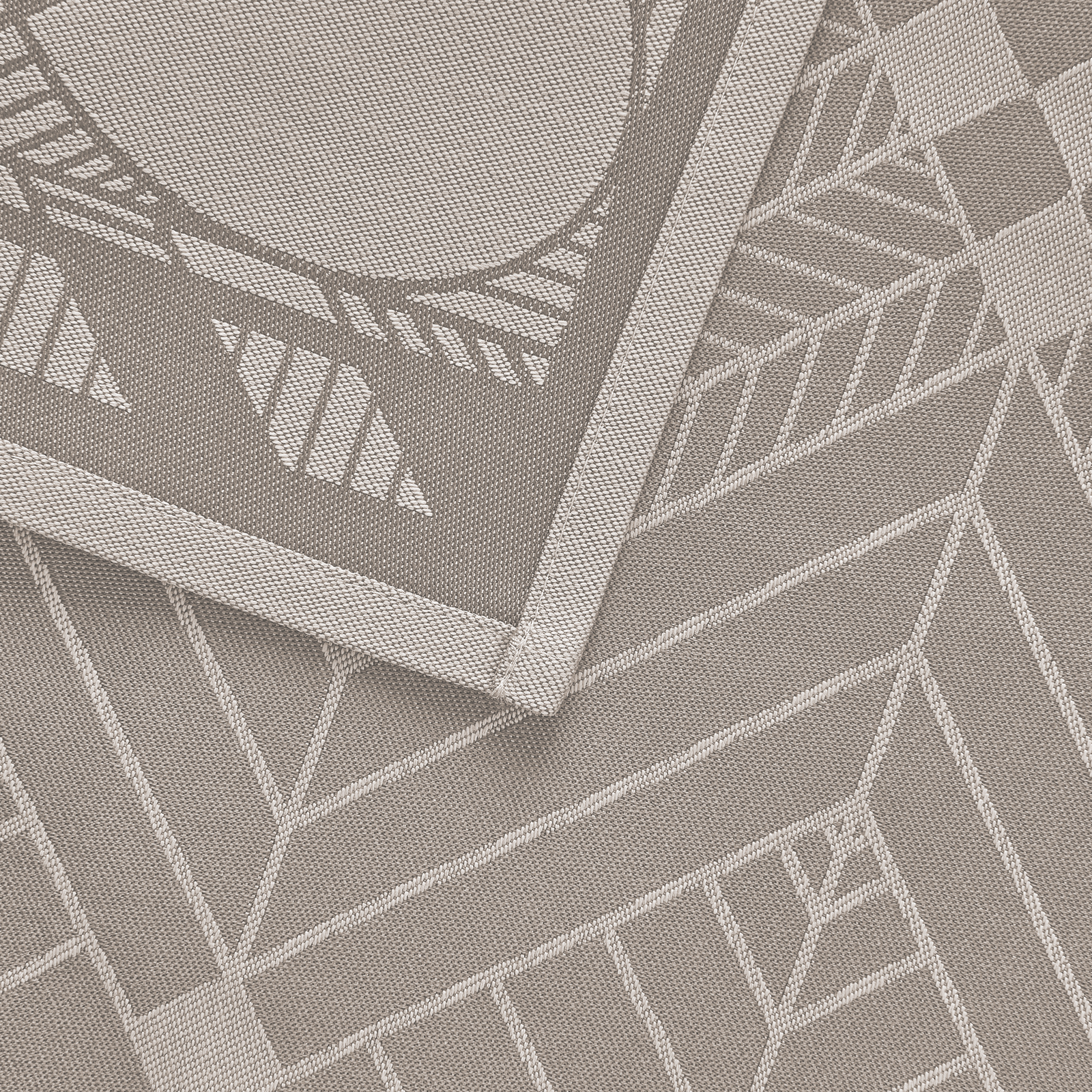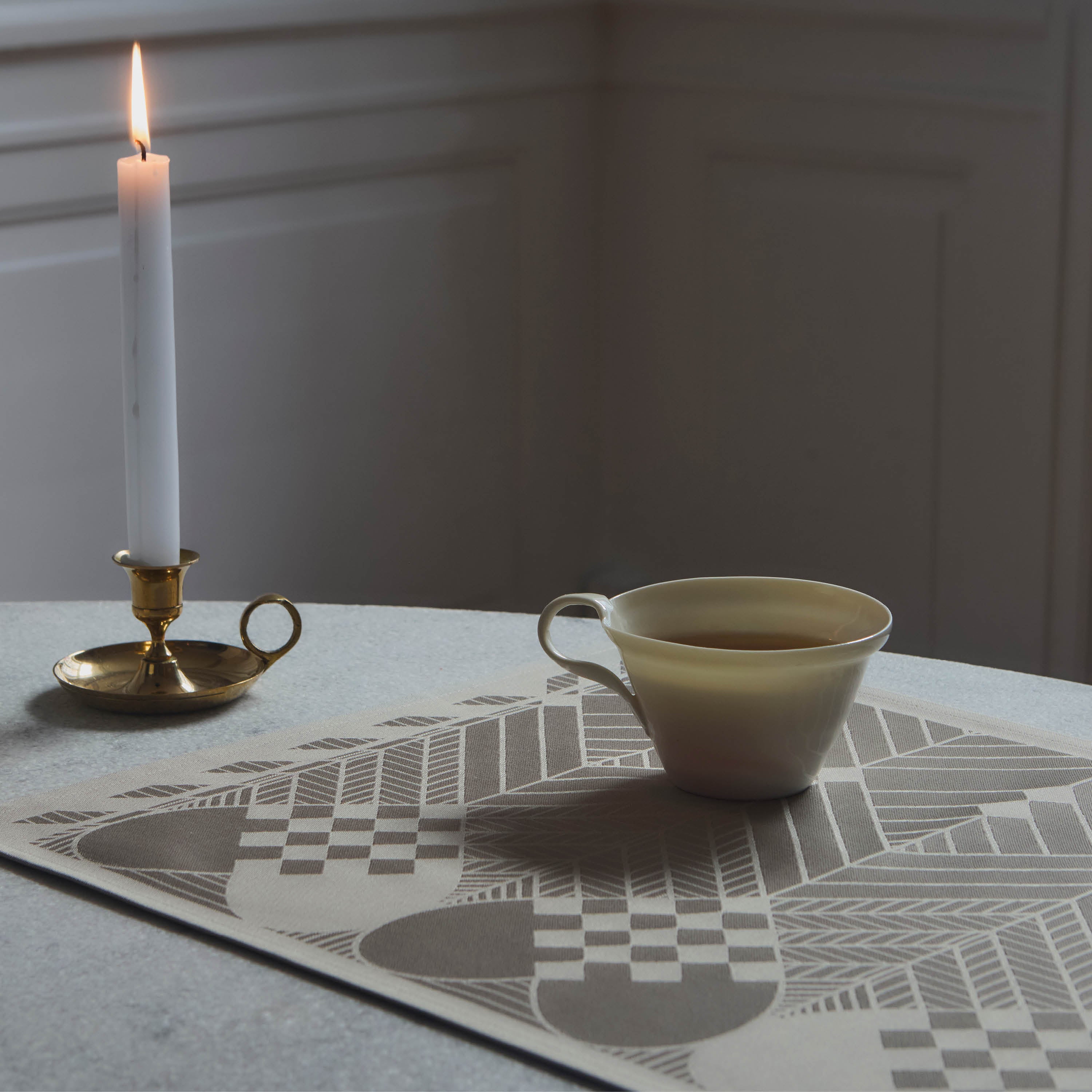 Christmas-dækkeserviettens stemningsfyldte motiv med fine, flettede julehjerter og stiliserede grankviste blev skabt af tekstilkunstner Bodil Bødtker-Næss i 1975 og er blevet et signaturdesign i Georg Jensen Damasks kollektion. Inspireret af den glatte, gråbrune bark på gamle hasseltræer har bordløberens elegante farve fået navnet Hazel Wood.