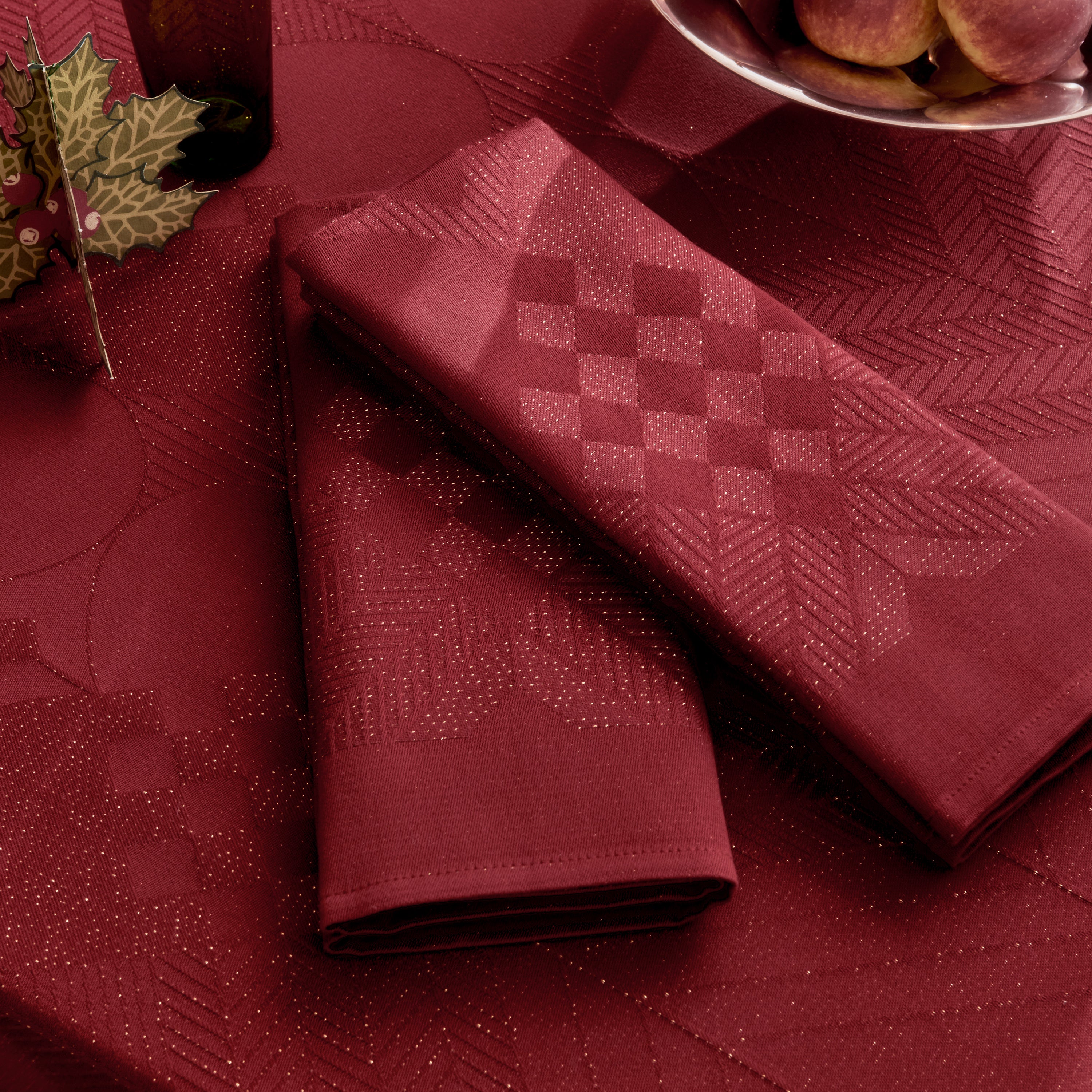 Georg Jensen Damask fejrer juledesignets 50-års jubilæum med et funklende præg på det ikoniske motiv. Den limiterede jubilæumsdug, Christmas 50, i farven Gold Red er vævet i langfibret, dybrød bomuld med gyldne, metalliske tråde. En glimtende dug til den magiske juletid.