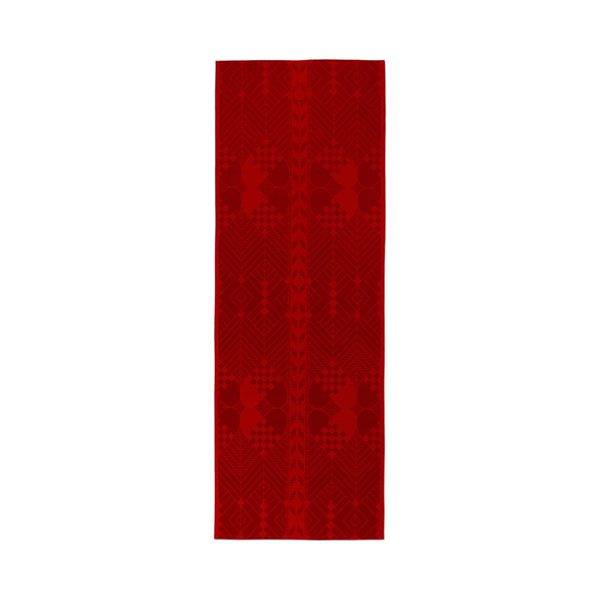 I den mørkerøde variant er to nuancer af julens ikoniske farve kombineret i vævningen, hvilket giver bordløberen en enkel, klassisk og stilfuld fremtoning. Matchende stofservietter fuldender udtrykket.