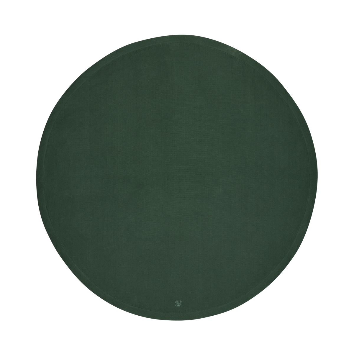 Juletræstæppet er helt enkelt uden mønster og har et logo som eneste detalje. I farven København skaber den mørkegrønne nuance stemning i rummet. Tæppet har et meleret udtryk, fordi det er vævet af to forskellige grønne tråde.