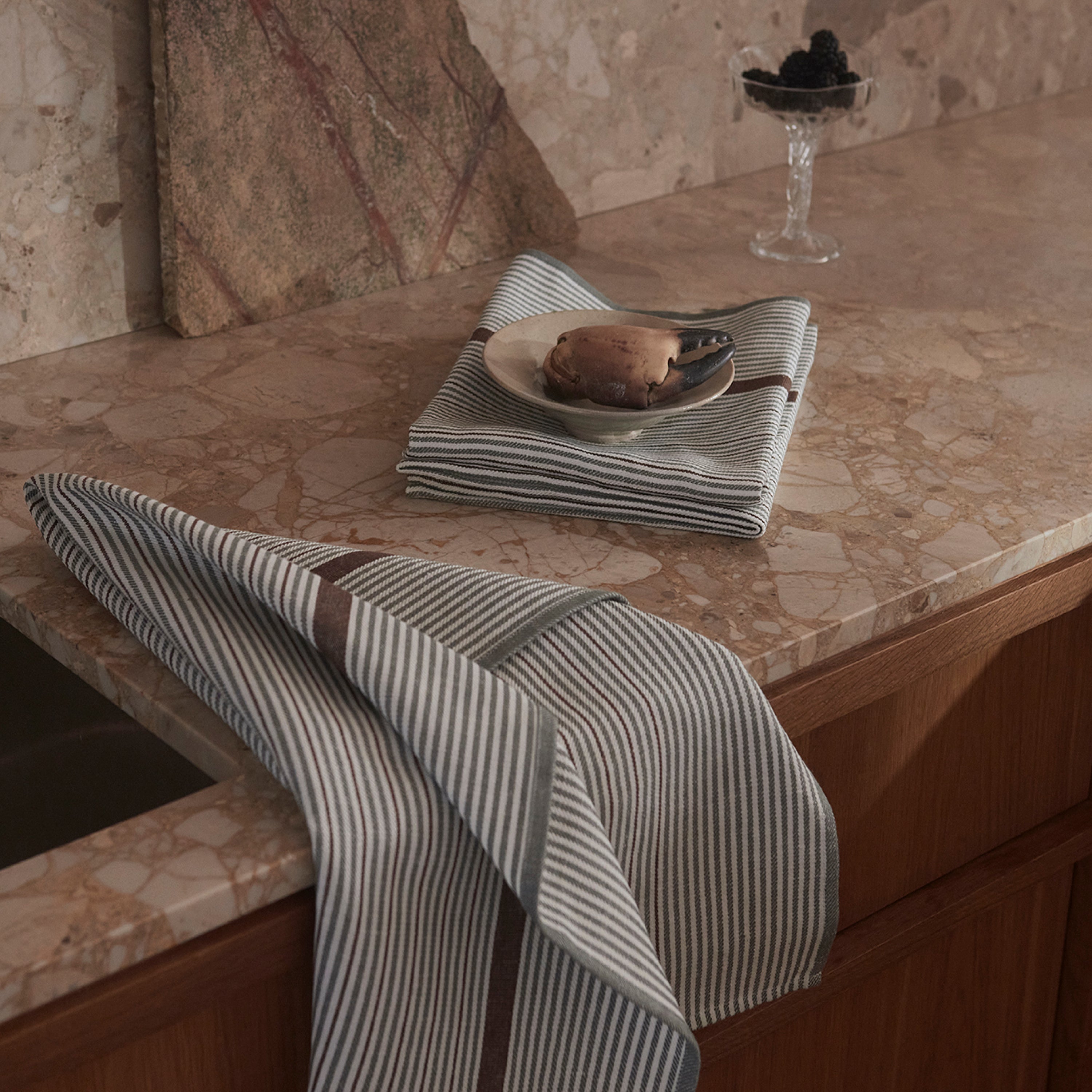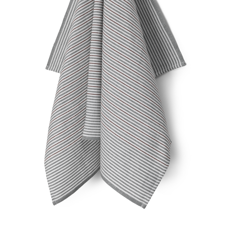 Comet er et tidløst viskestykke med striber designet i 1979 af Bent Georg Jensen – her i den lysegrønne nuancekombination Mineral Green. Viskestykket er vævet i en blanding af bomuld og hør, hvilket gør det optimalt at tørre med.