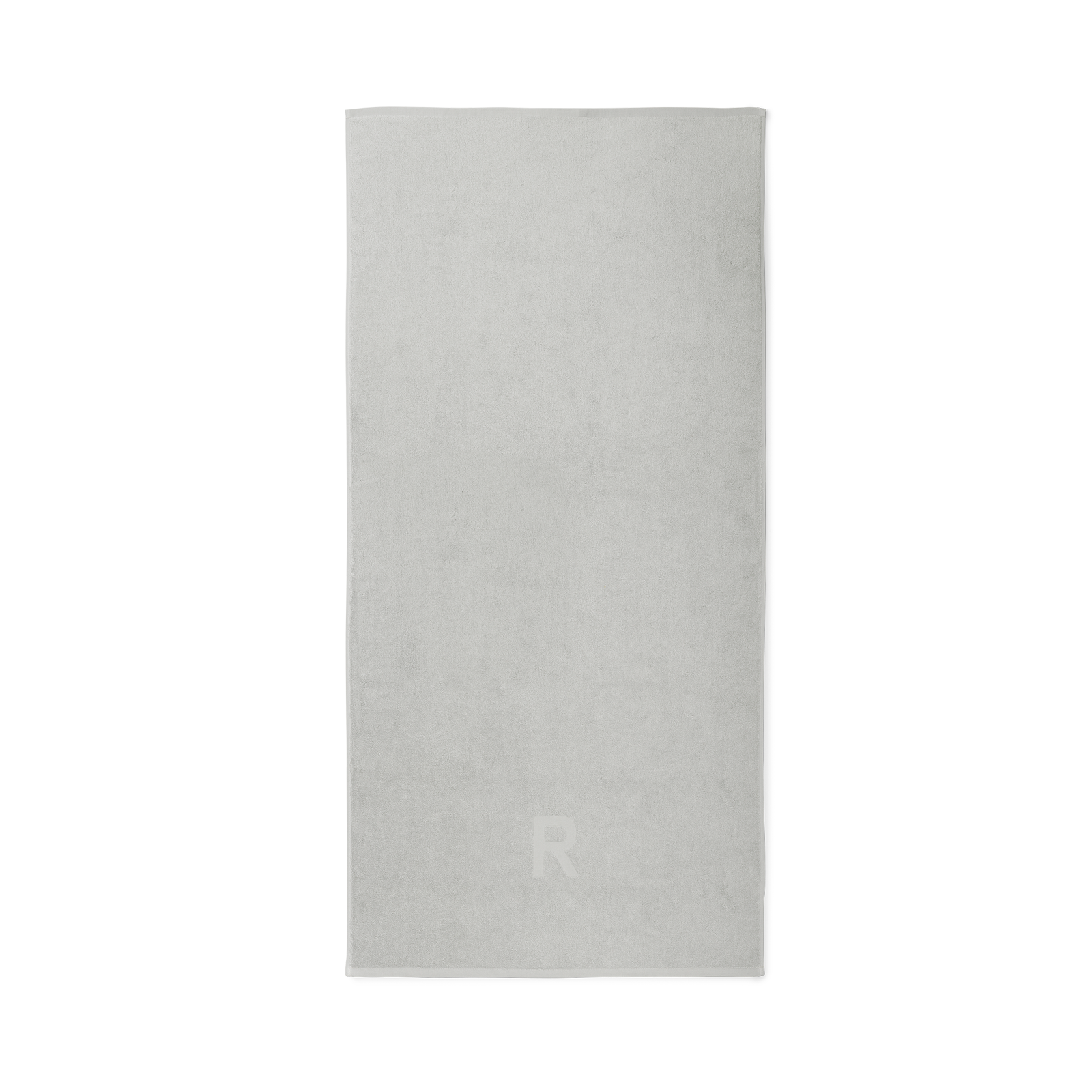 Damask Terry badehåndklæde med indvævet R bogstav. Badehåndklædet er jacquardvævet i 100 % dobbelttvundet, kæmmet bomuld med bogstav i relief. Det er både blødt, glansfuldt og slidstærkt. Den elegante farve, Platinum Grey, er en let og kølig nuance af grå.