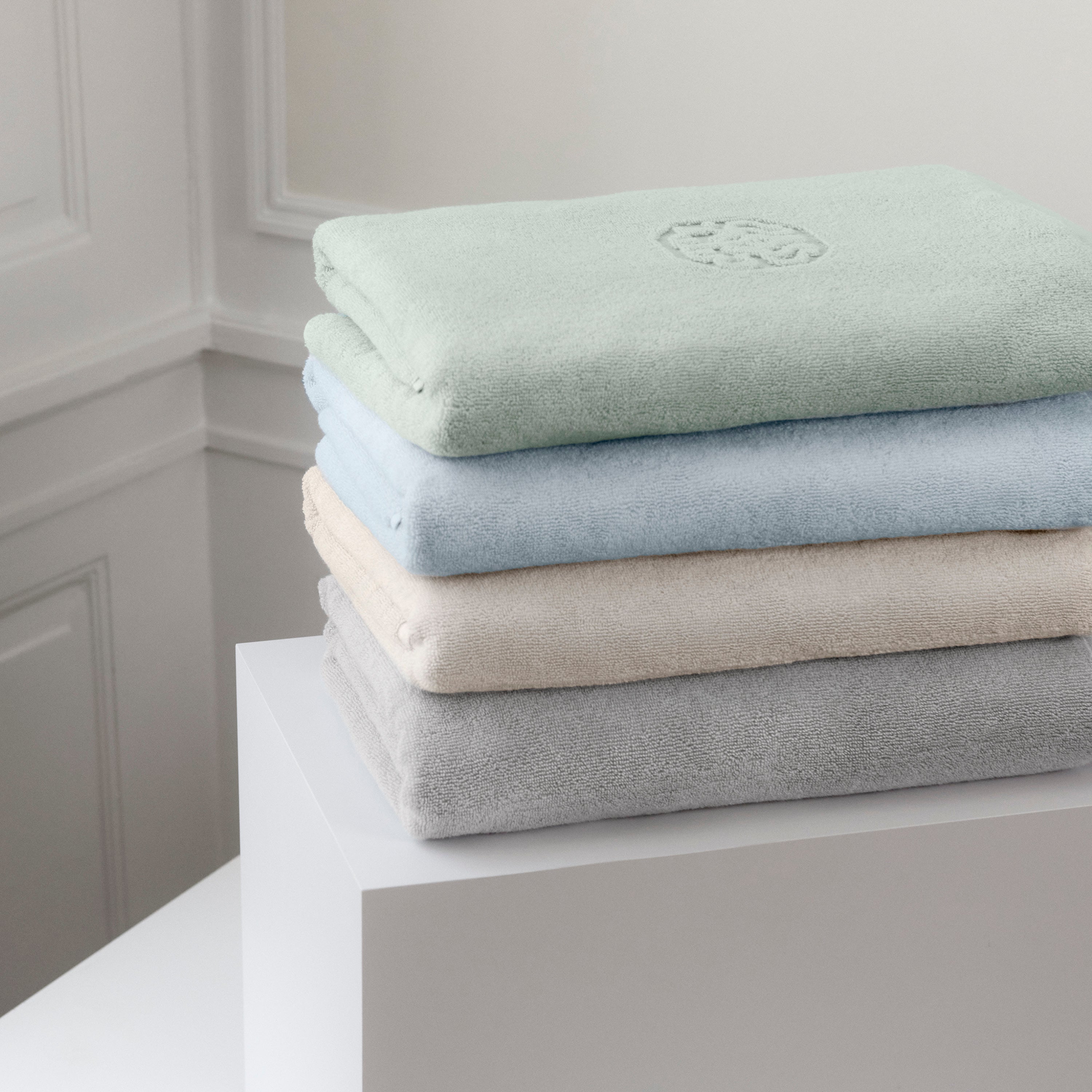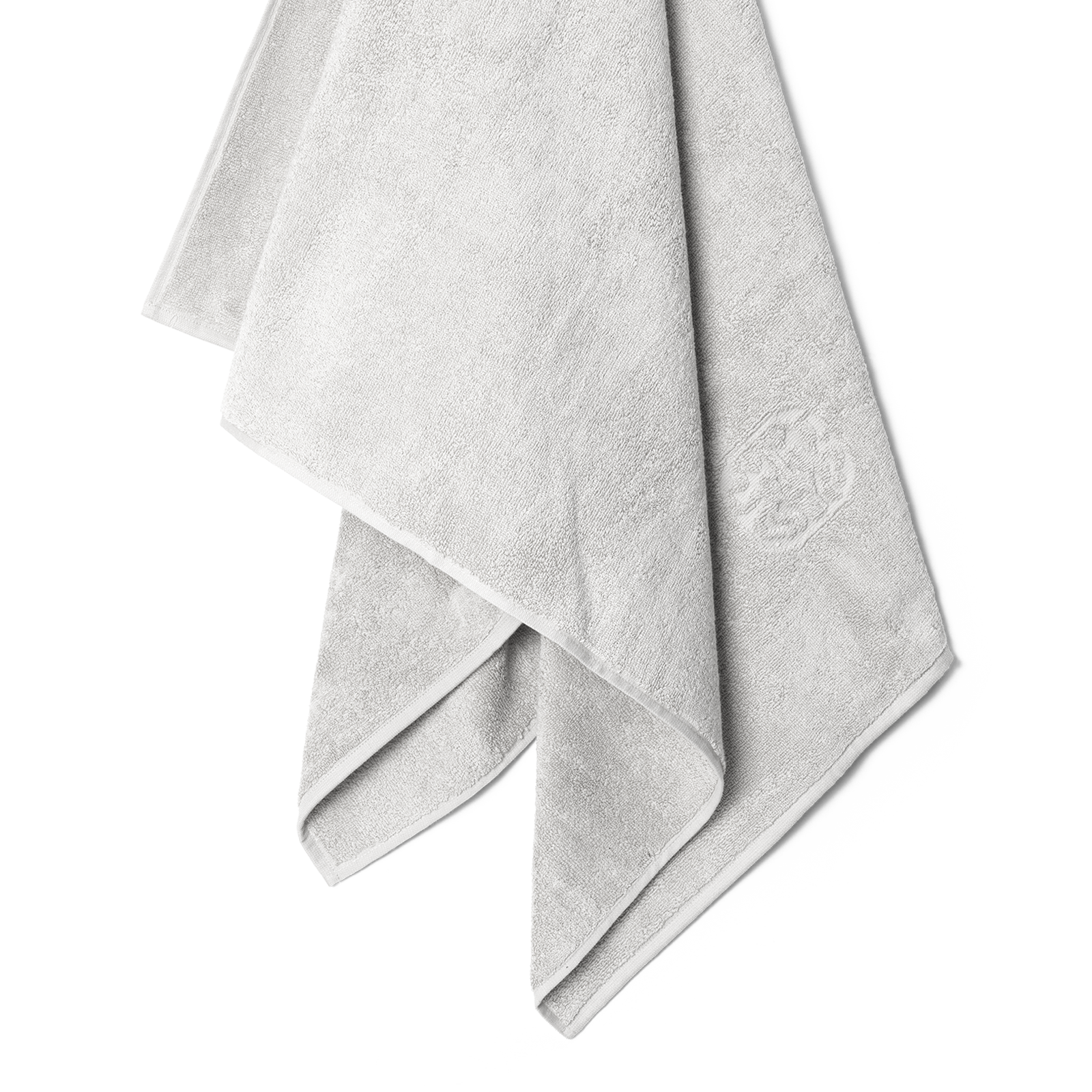 Damask Terry badehåndklædet har et enkelt udtryk med Georg Jensen Damasks ikoniske logo indvævet som elegant detalje. Platinium Grey er en lys og rolig nuance af grå.