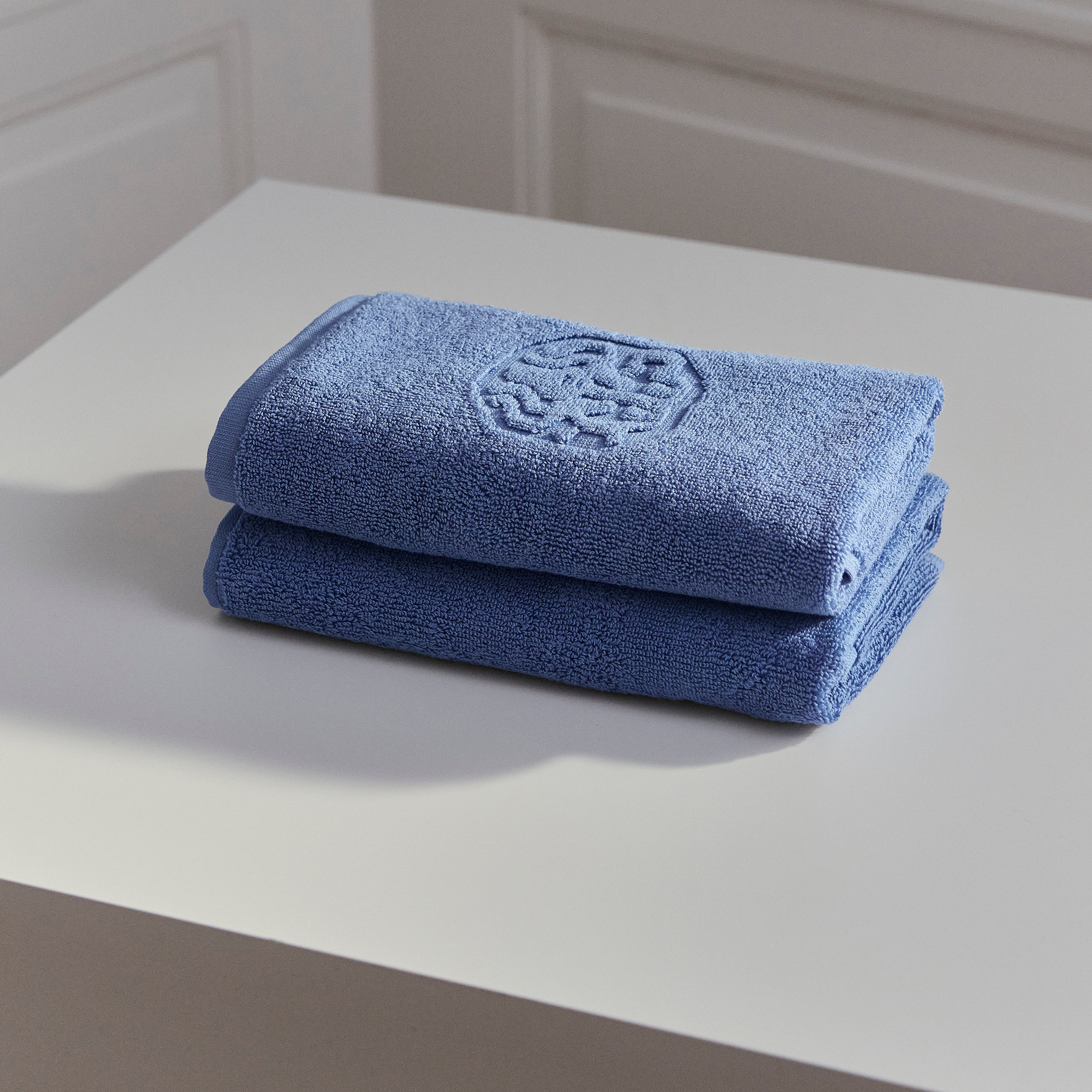 Et blødt håndklæde til dine gæster. Damask Terry-gæstehåndklædet er frottévævet i 100 % dobbelttvundet, kæmmet bomuld. Farven Bright Blue er en klar blå farve, der går på tværs af Damask Terry-serien.