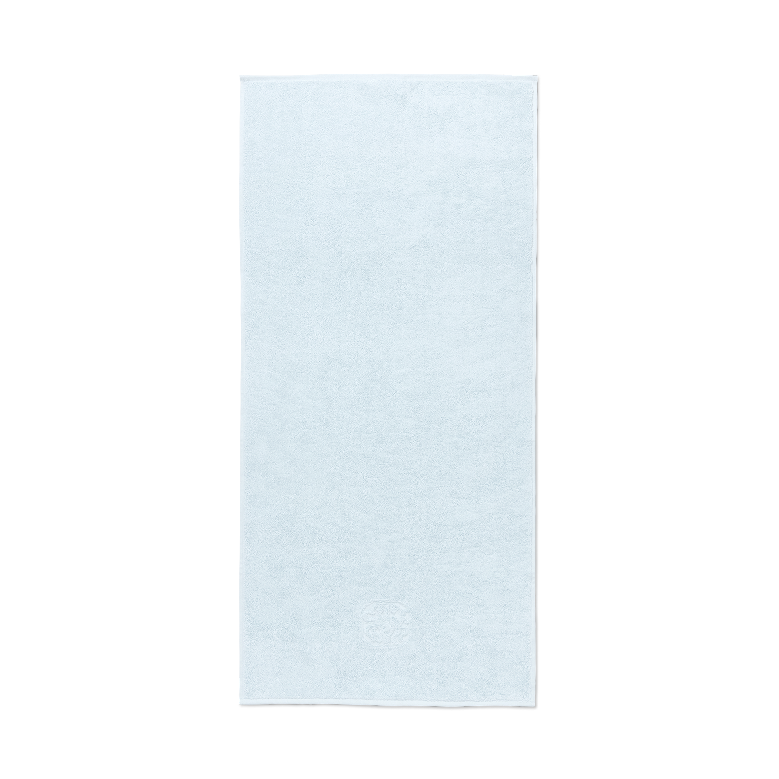 Damask Terry håndklædet har et enkelt udtryk med Georg Jensen Damasks ikoniske logo indvævet som elegant detalje. Minimal Blue er en hel let variant af lyseblå med et strejf af aqua.