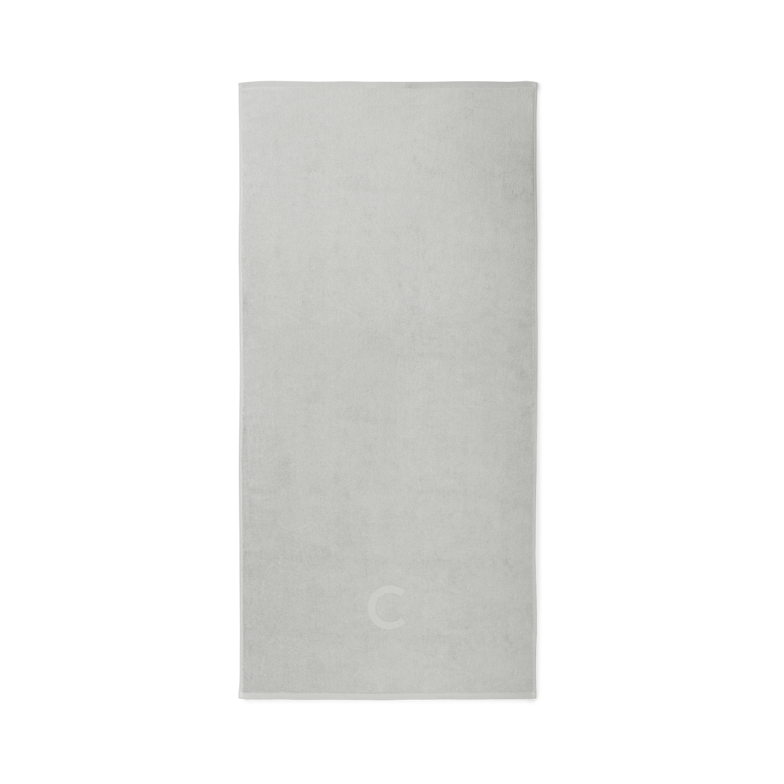 Damask Terry badehåndklæde med indvævet C bogstav. Badehåndklædet er jacquardvævet i 100 % dobbelttvundet, kæmmet bomuld med bogstav i relief. Det er både blødt, glansfuldt og slidstærkt. Den elegante farve, Platinum Grey, er en let og kølig nuance af grå.