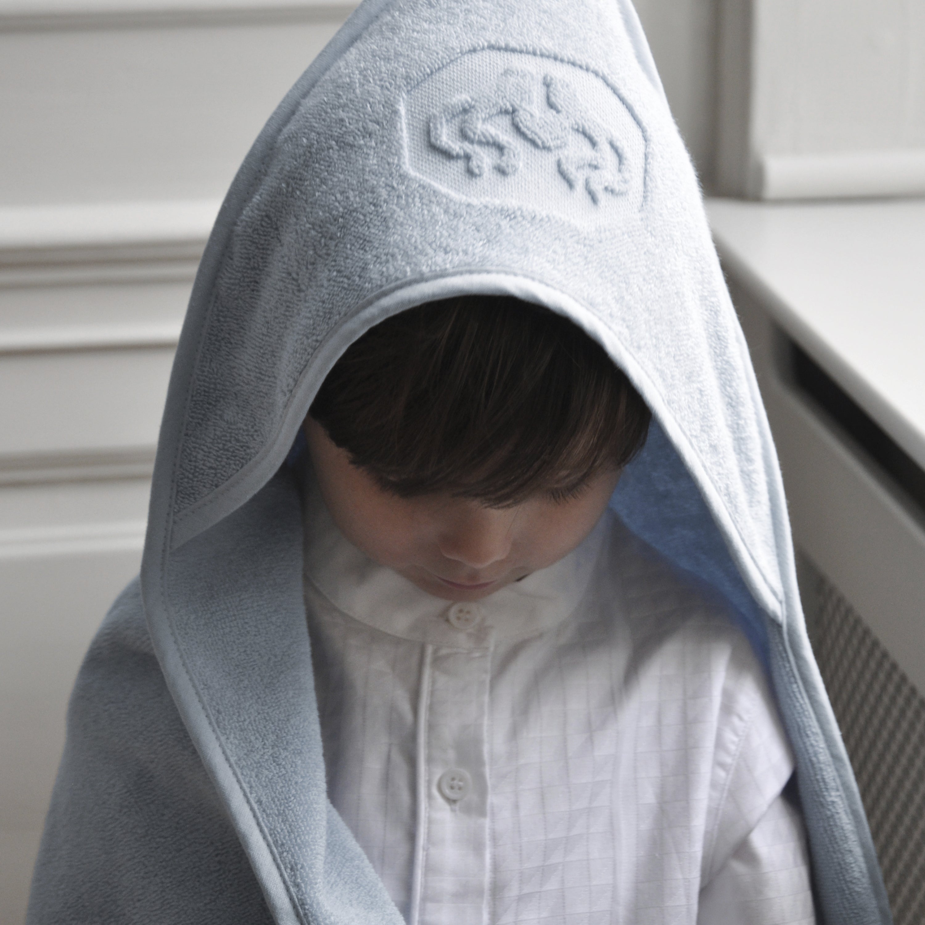 Hætten med et lille indvævet logo skaber en varm og tryg fornemmelse, og håndklædets størrelse gør, at barnet kan bruge det i mange år – både hjemme på badeværelset og ved poolen eller på stranden. Den tykke frotté har en kvalitet, der kun bliver bedre og bedre med tiden.