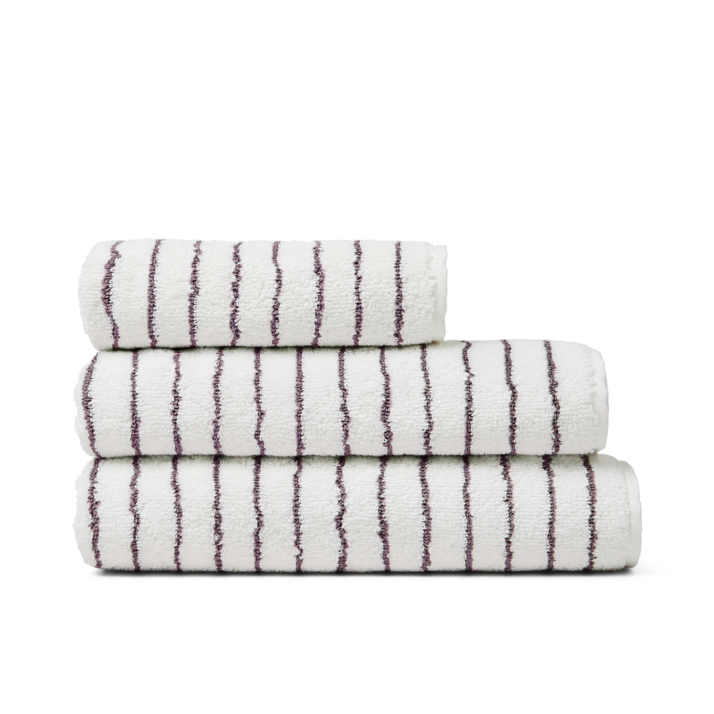 Essential Stripe-designet findes også som badehåndklæde, håndklæde, vaskeklud og bademåtte.