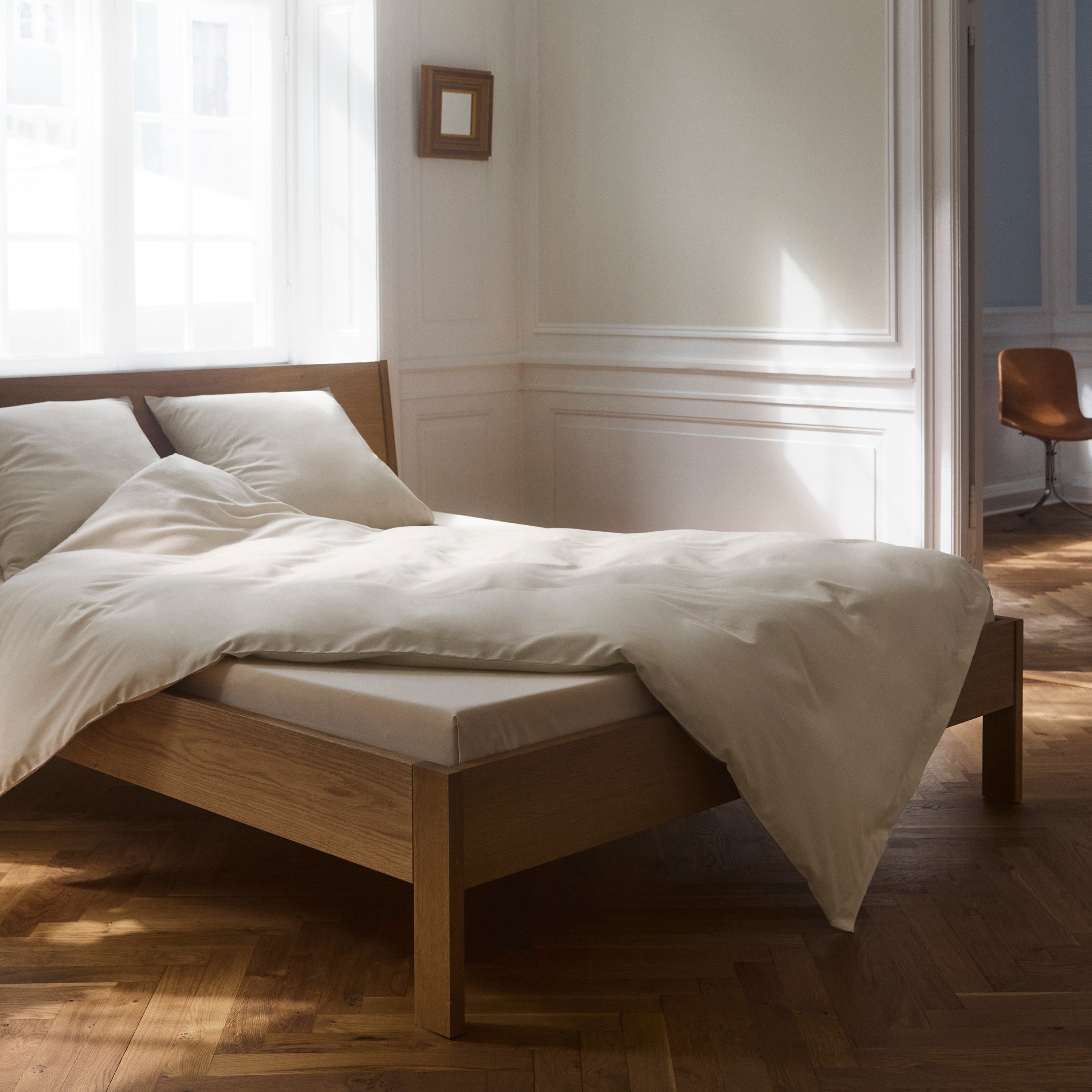 Even sengetøjet er lærredsvævet i hør og bomuld for at forene de to materialers særlige egenskaber. Hørens naturlige tekstur kombineret med bomuldens blødhed og formstabilitet. Sammen giver det en smuk, mat og blød overflade – og et åndbart og slidstærkt sengetøj. Archive Linen er en lys beige farve med referencer til linned fra vores århundreder gamle arkiv.