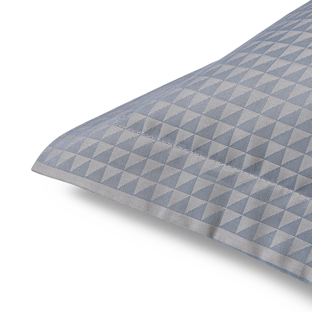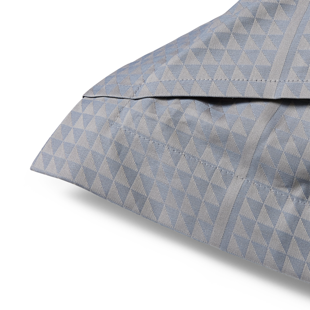 Georg Jensen Damasks Facet sengetøj har et stringent design og er damaskvævet i 100 % kæmmet bomuld, som giver en blød og glat overflade. Med Facet designet benytter tekstilkunstner Jette Nevers den klassiske damaskvævning til at skabe et elegant skyggespil, der smukt fremhæves i de smukke grå toner i farven Quartz.