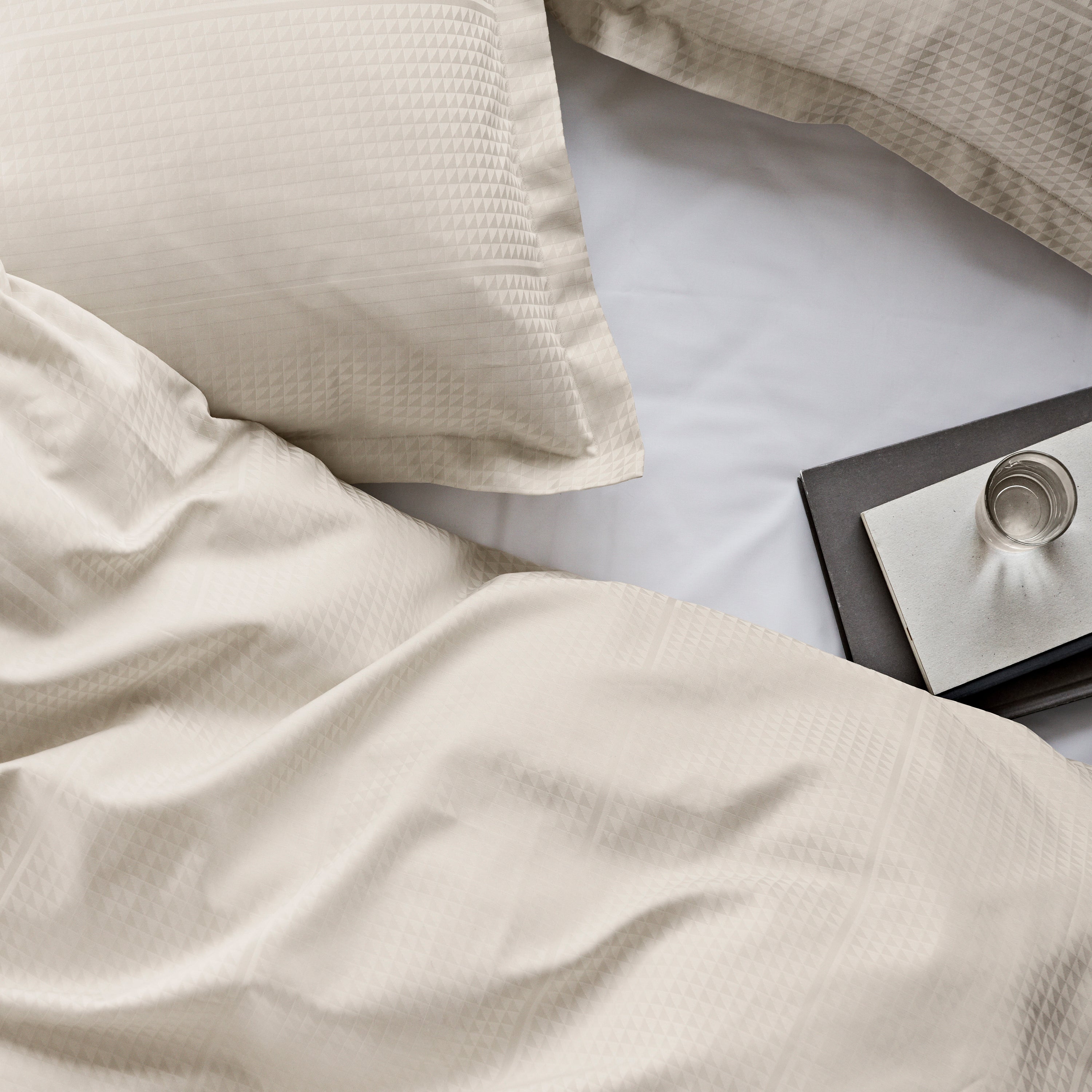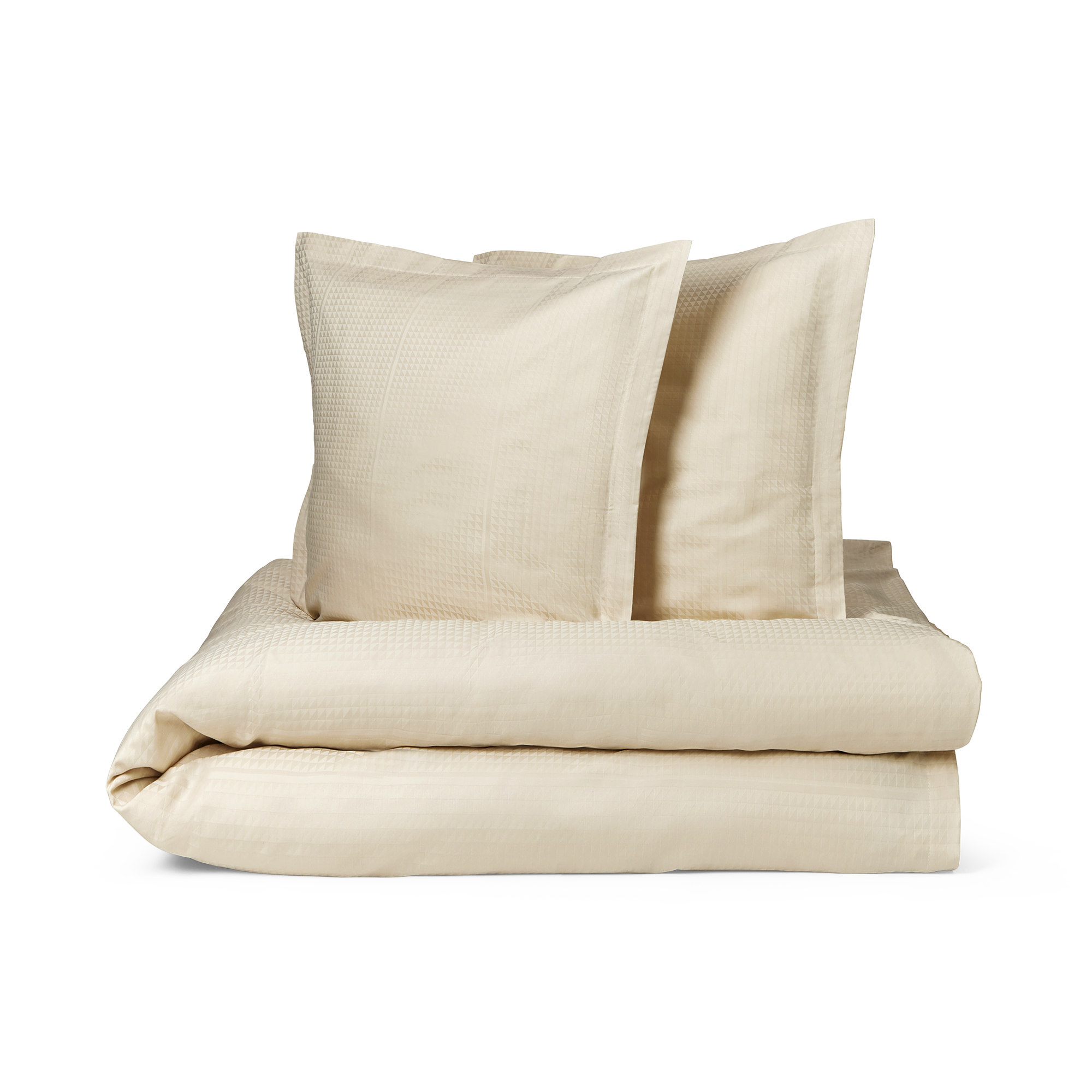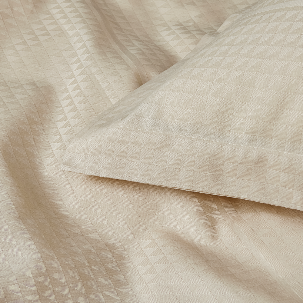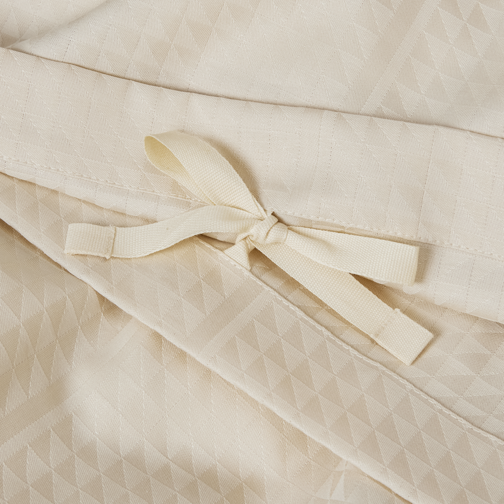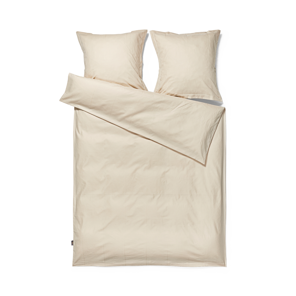 Georg Jensen Damasks Facet sengetøj har et stringent design og er damaskvævet i 100 % kæmmet bomuld, som giver en blød og glat overflade. Med Facet designet benytter tekstilkunstner Jette Nevers den klassiske damaskvævning til at skabe et elegant skyggespil, der smukt fremhæves i den lyse beige farve Archive.