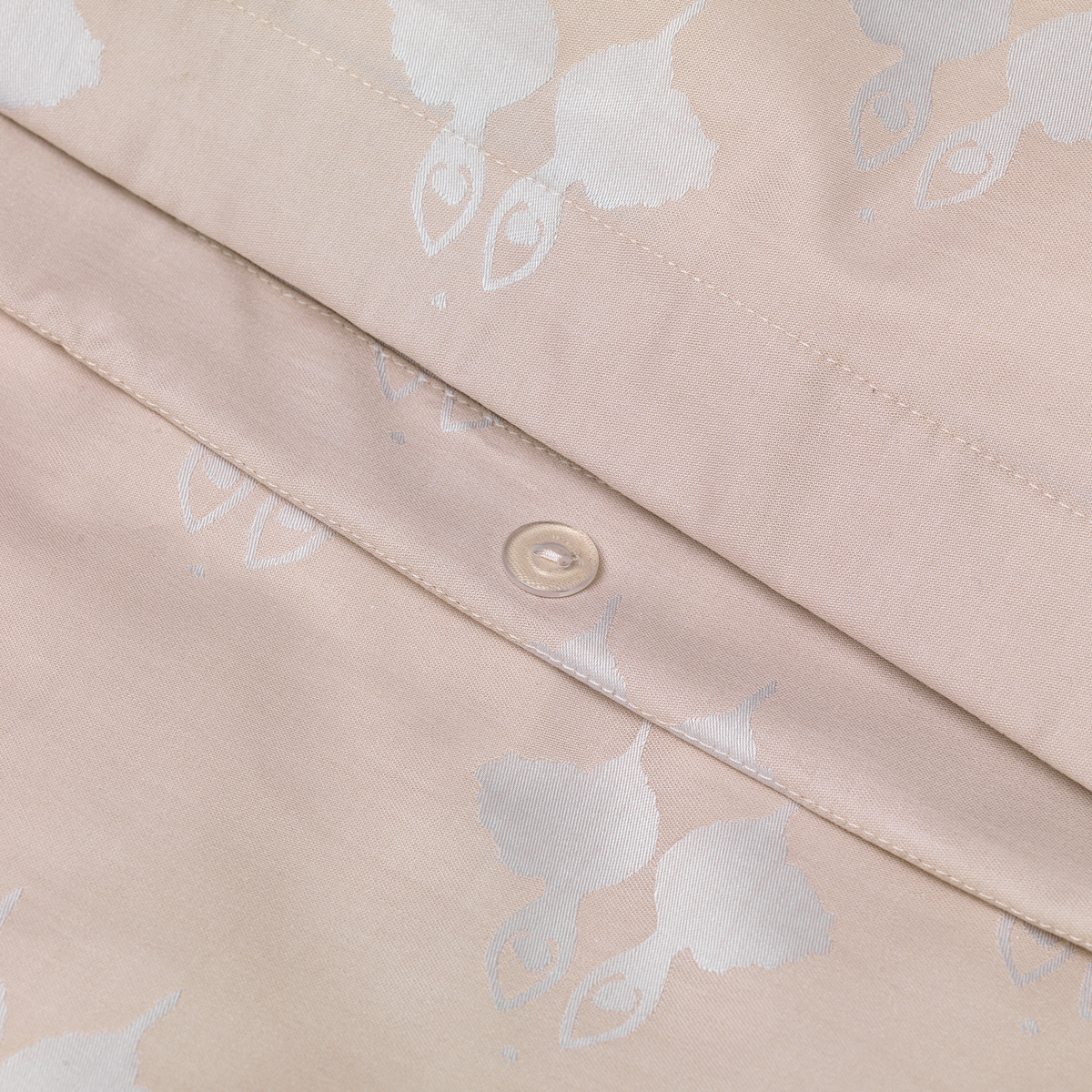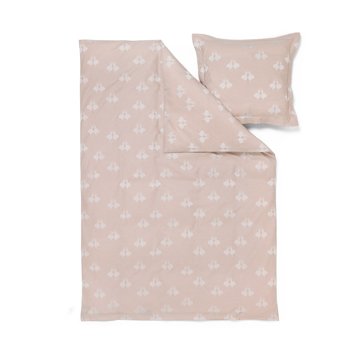 I den sarte rosa pastelfarve sender sengetøjet de små og lidt større piger af sted til drømmeland svøbt i den ypperste, bløde kvalitet og poetisk design. Et baby- og juniorlagen fra Georg Jensen Damask i en solid lærredsvævning fuldender udtrykket.