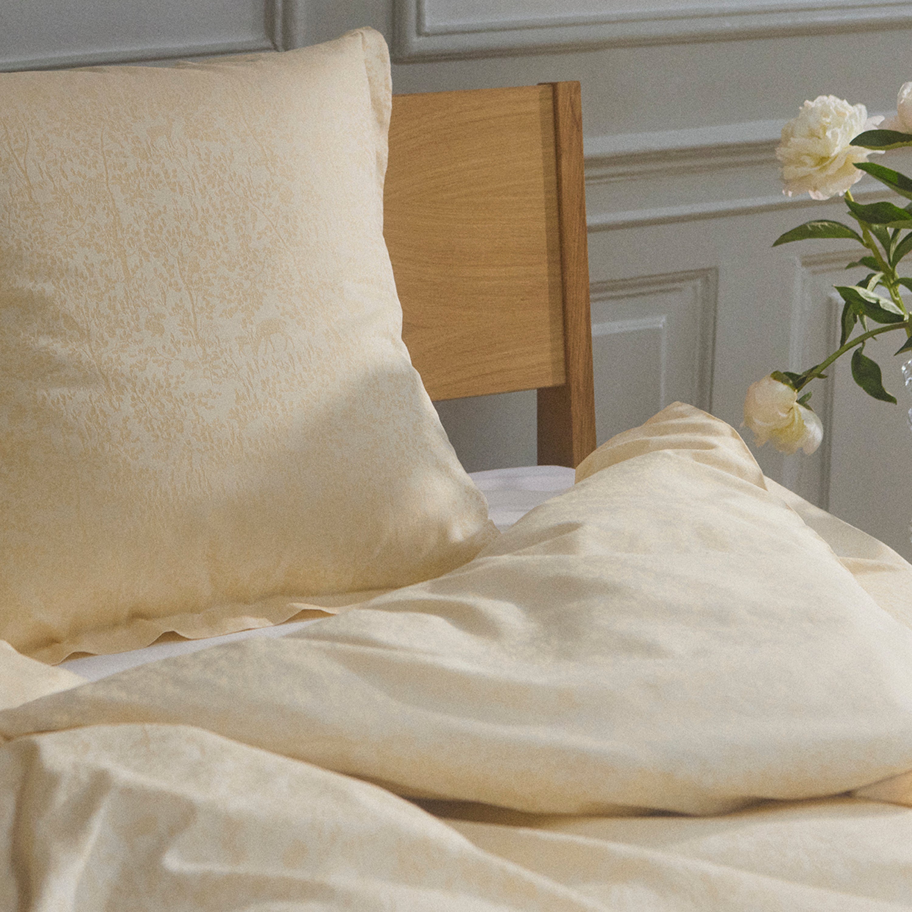 Pudebetrækket er skabt i 100 % økologisk bomuld. Farven Misty Yellow er en mild, lysegul farve.