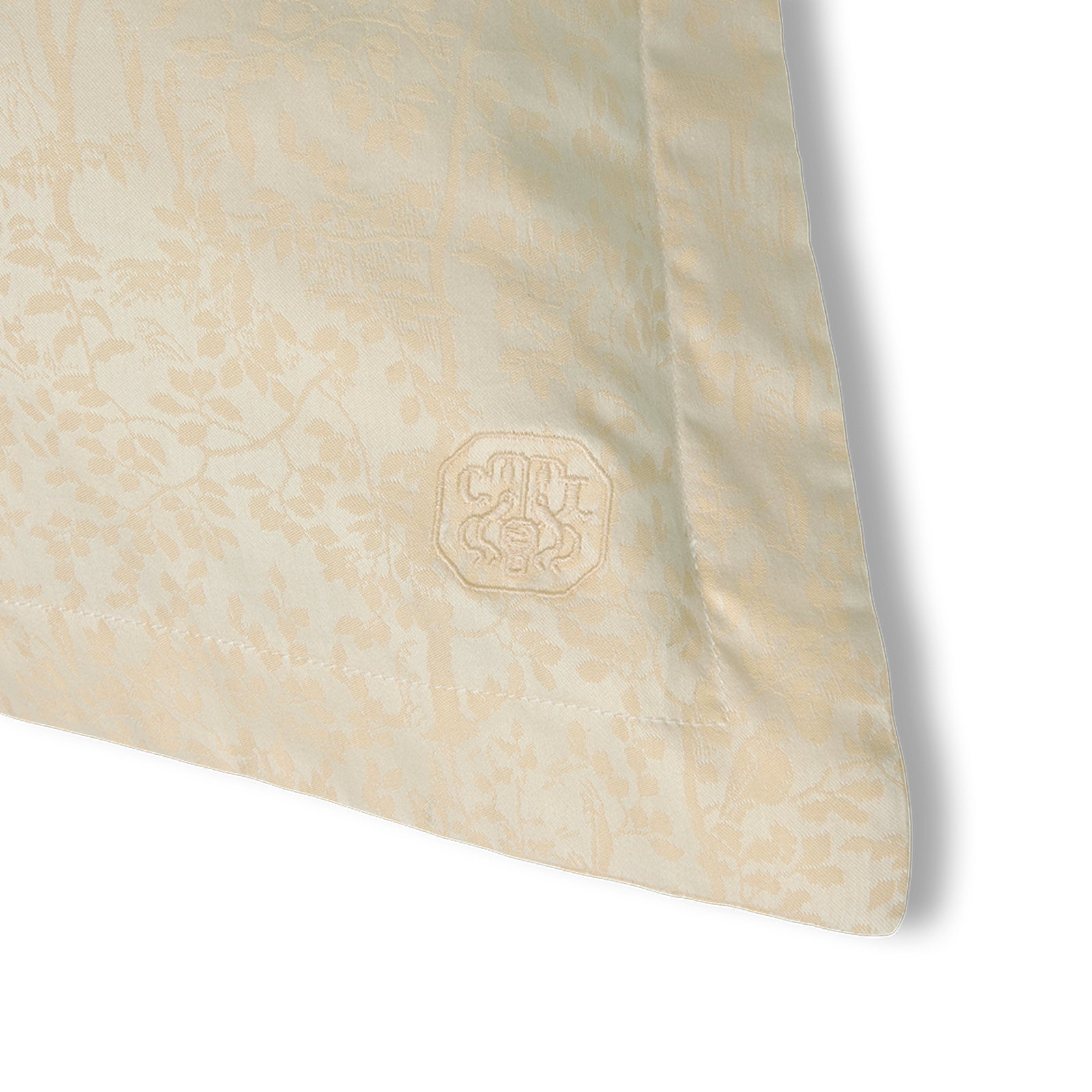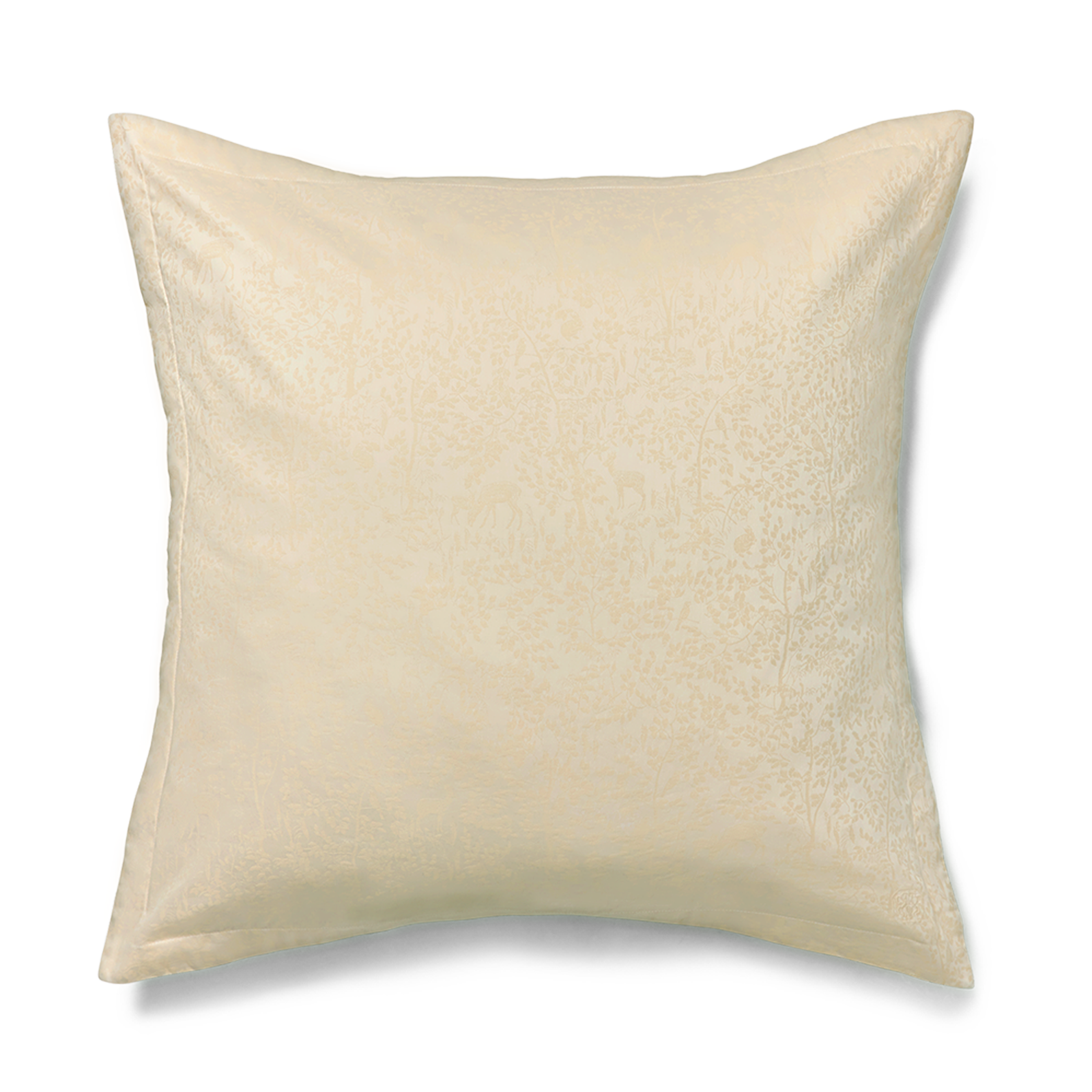 Et elegant mønster med dådyr, kaniner og fugle blandt nyudsprungne træer træder smukt frem i det jacquardvævede sengetøj, Forest. Mønstret er skabt med inspiration hentet fra en smuk 1800-tals gobelin fra Georg Jensen Damasks arkiver.