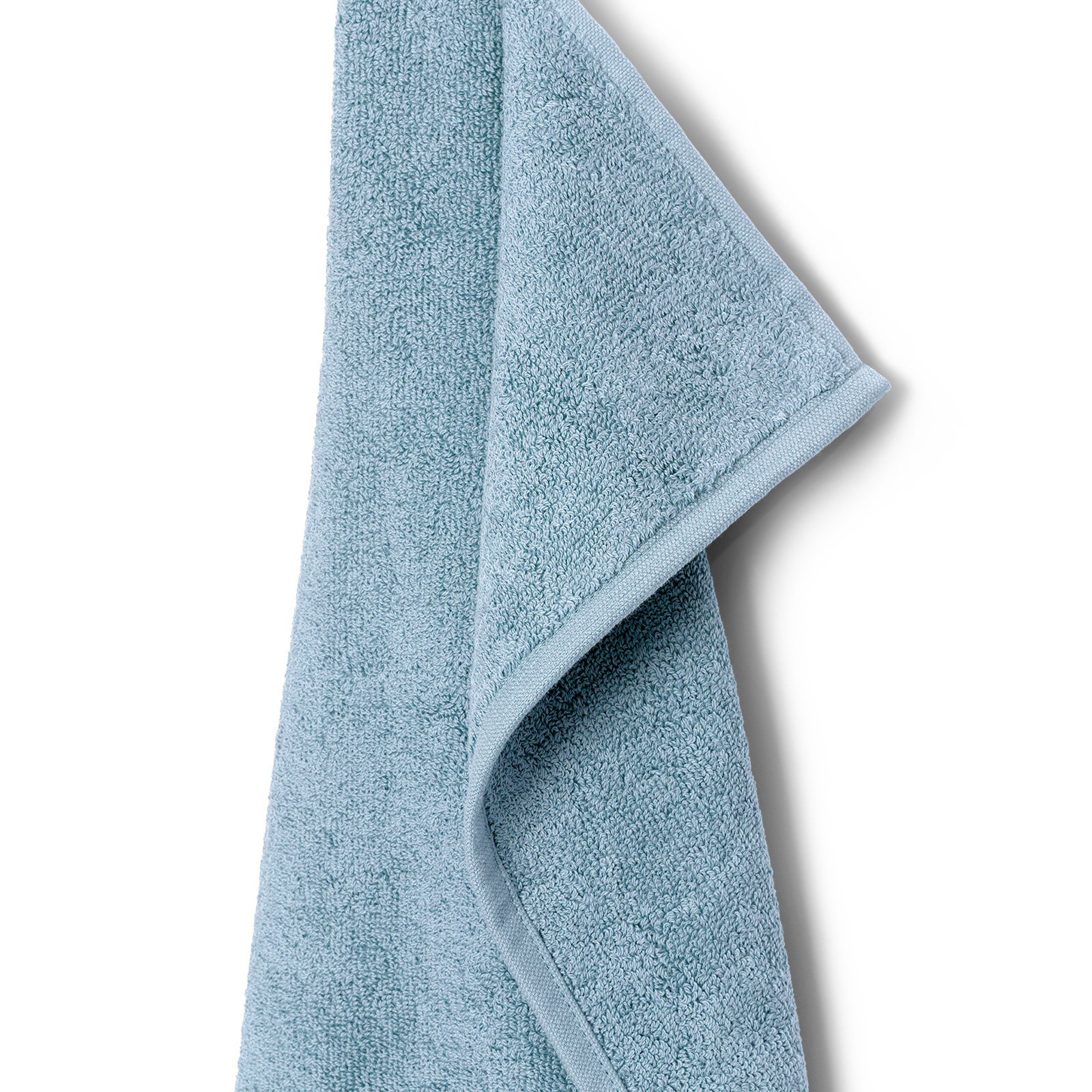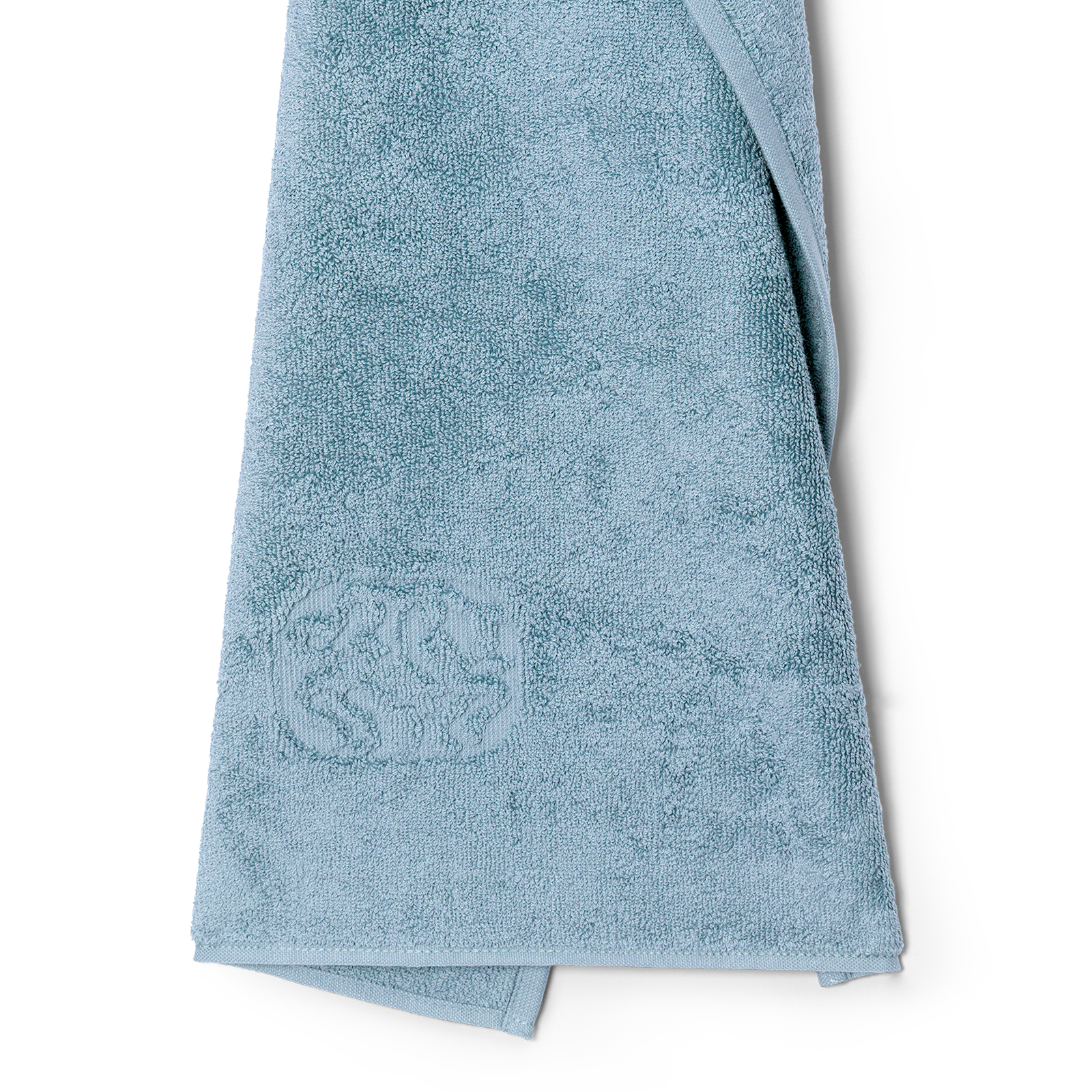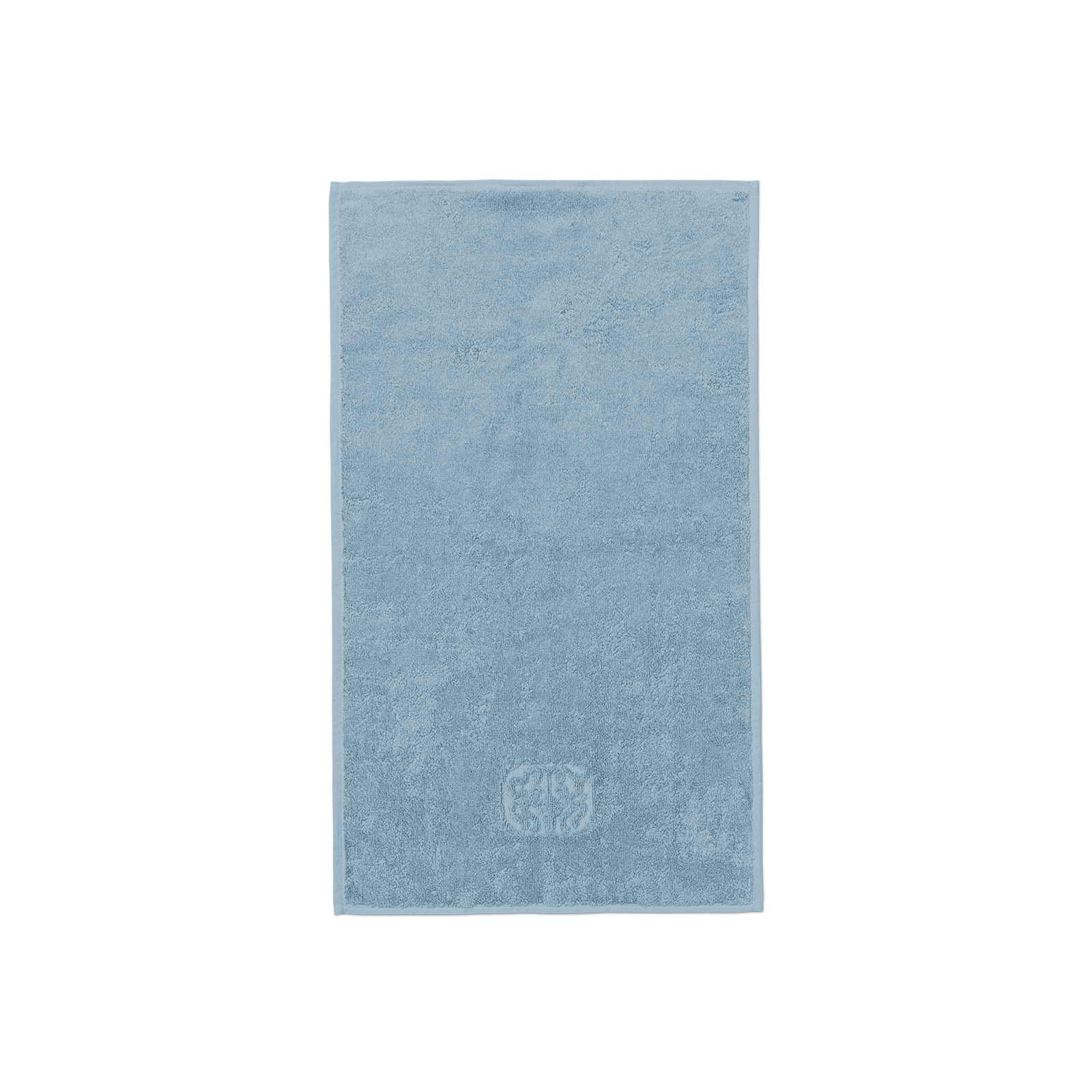 Damask Terry gæstehåndklæde har et enkelt udtryk med Georg Jensen Damask ikoniske logo indvævet som elegant detalje. Blue Hour er en smuk og tidløs, mellemblå farve.
