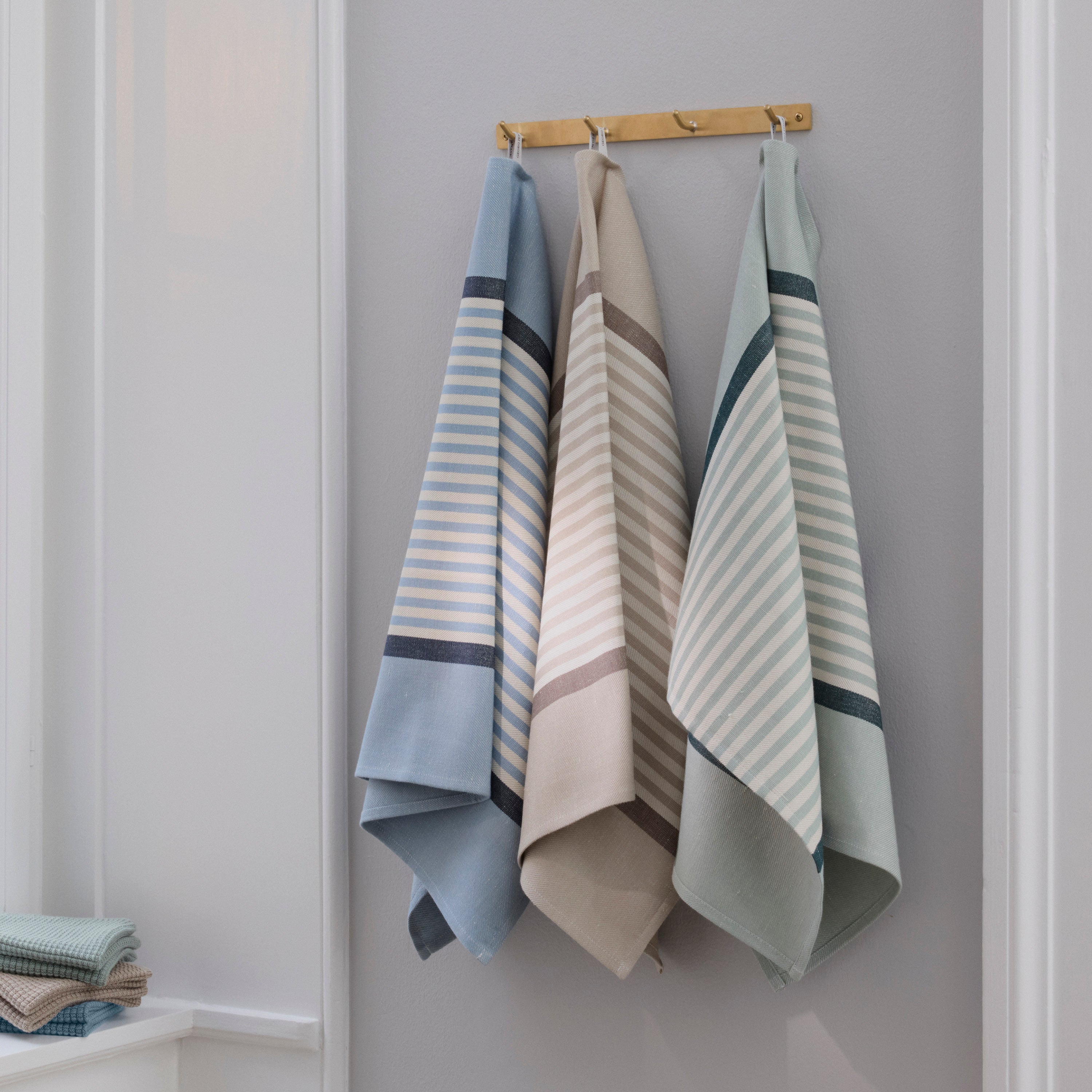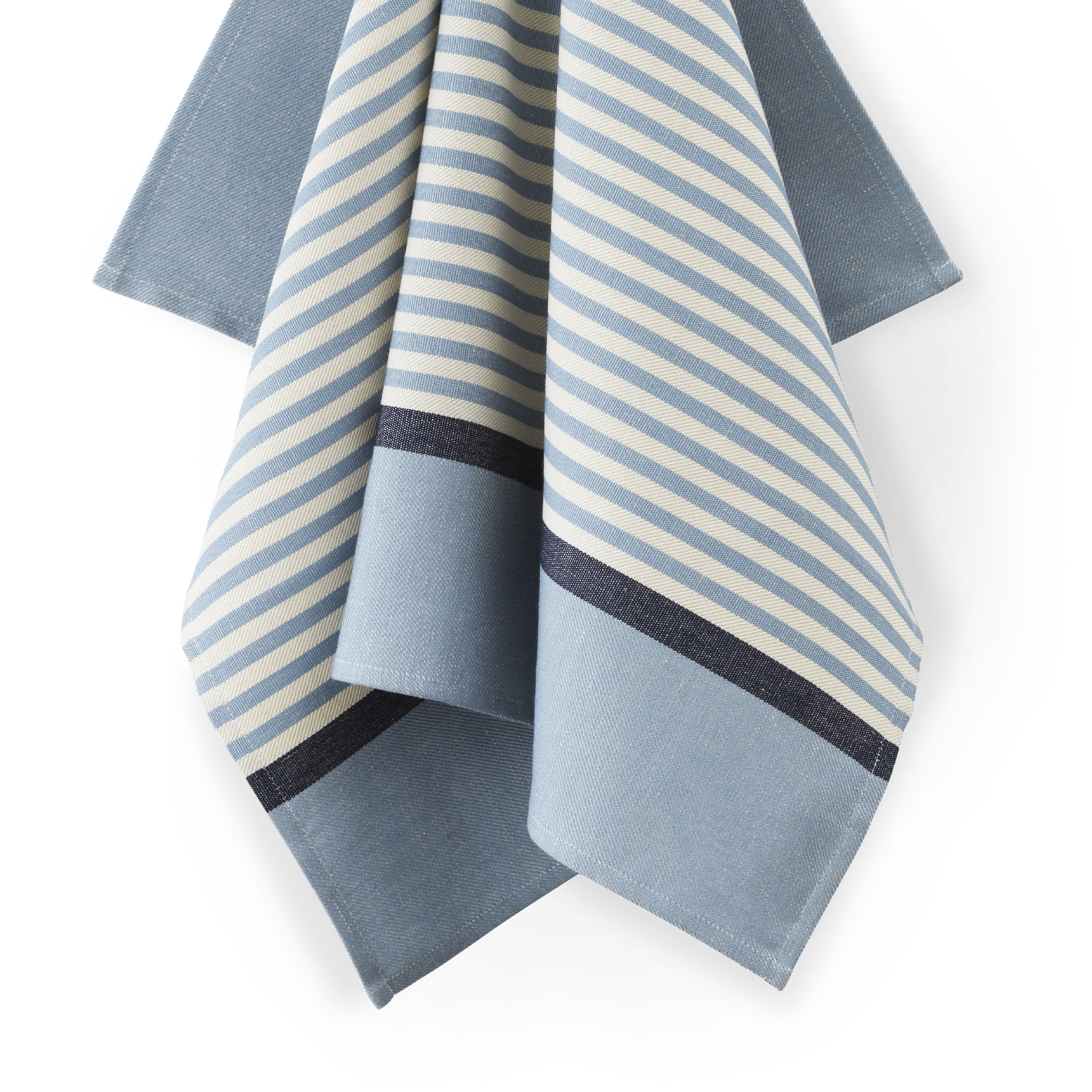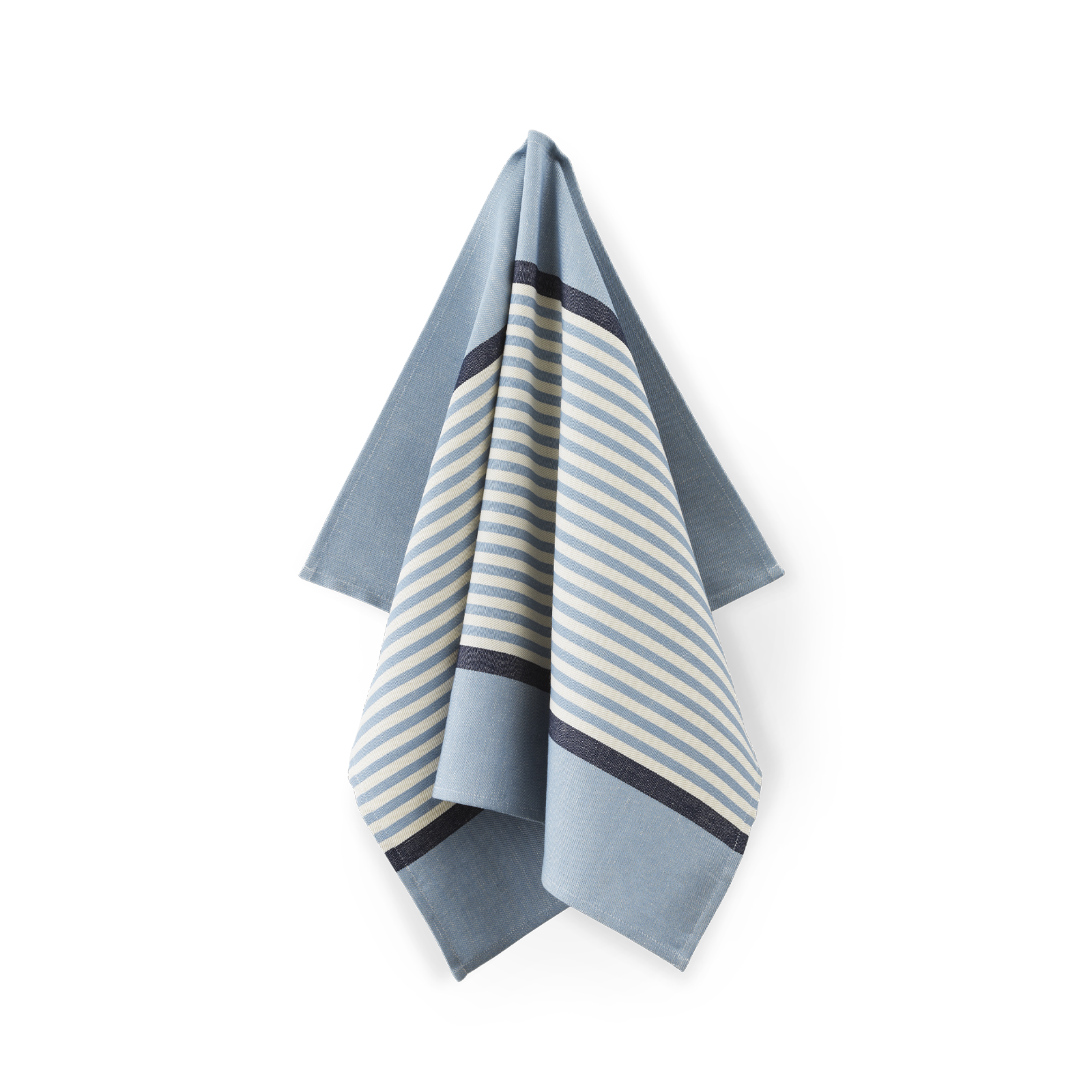 Abild er en klassiker i Georg Jensen Damasks kollektion og fejrer i år 35-års jubilæum. Det ikoniske design er vævet i en kombination af 50 % hør og 50 % bomuld, og det stringente udtryk er både smukt alene og i kombination med andre viskestykker og køkkenhåndklæder. Farvekombinationen Blue Hour er en særlig, limiteret jubilæumsvariant og består af mellemblå og dybblå striber på en lys, beige baggrund.