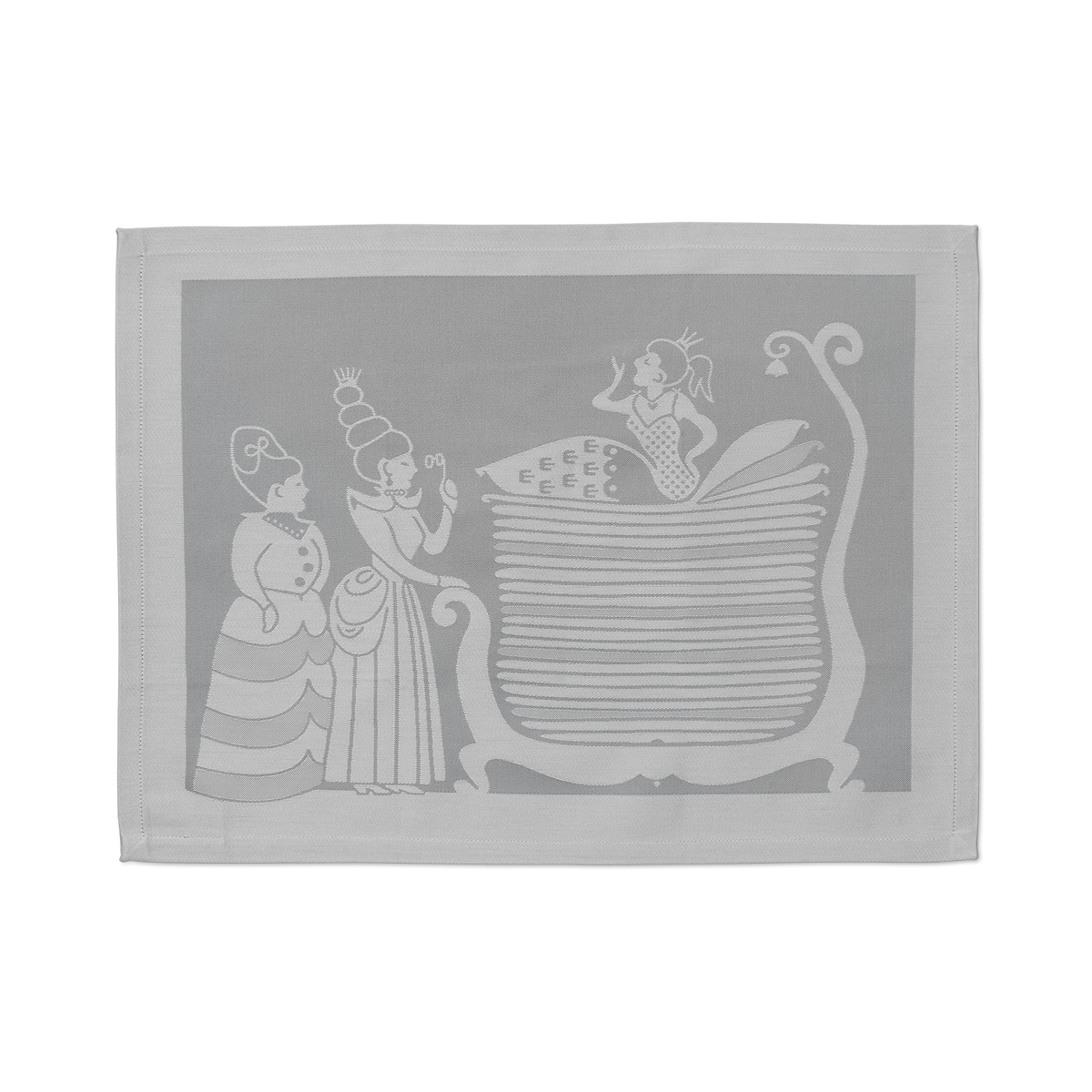 Motiverne på de to dækkeservietter er hentet fra H.C. Andersen dugen, som er en klassiker i kollektionen. Vi møder velkendte figurer fra H.C. Andersens eventyr: Prinsessen, der sov så forskrækkeligt oven på den lille ært under de mange madrasser og edderdunsdyner, som kun en rigtig prinsesse ville gøre det. Og havfruen, der længselsfuldt drømte om et liv på jorden med prinsen og endte med at ofre både sin fortryllende sangstemme og sit liv for kærligheden.