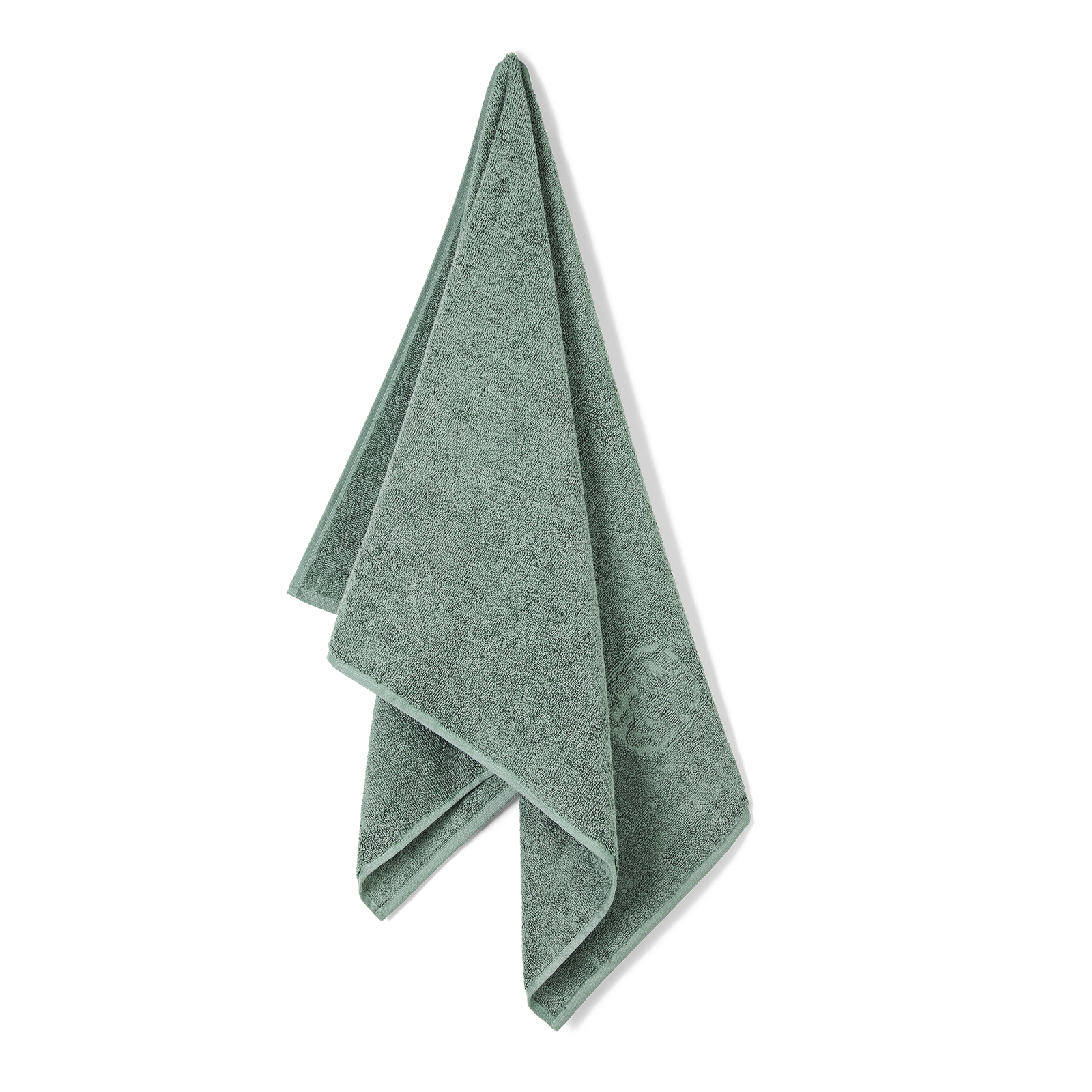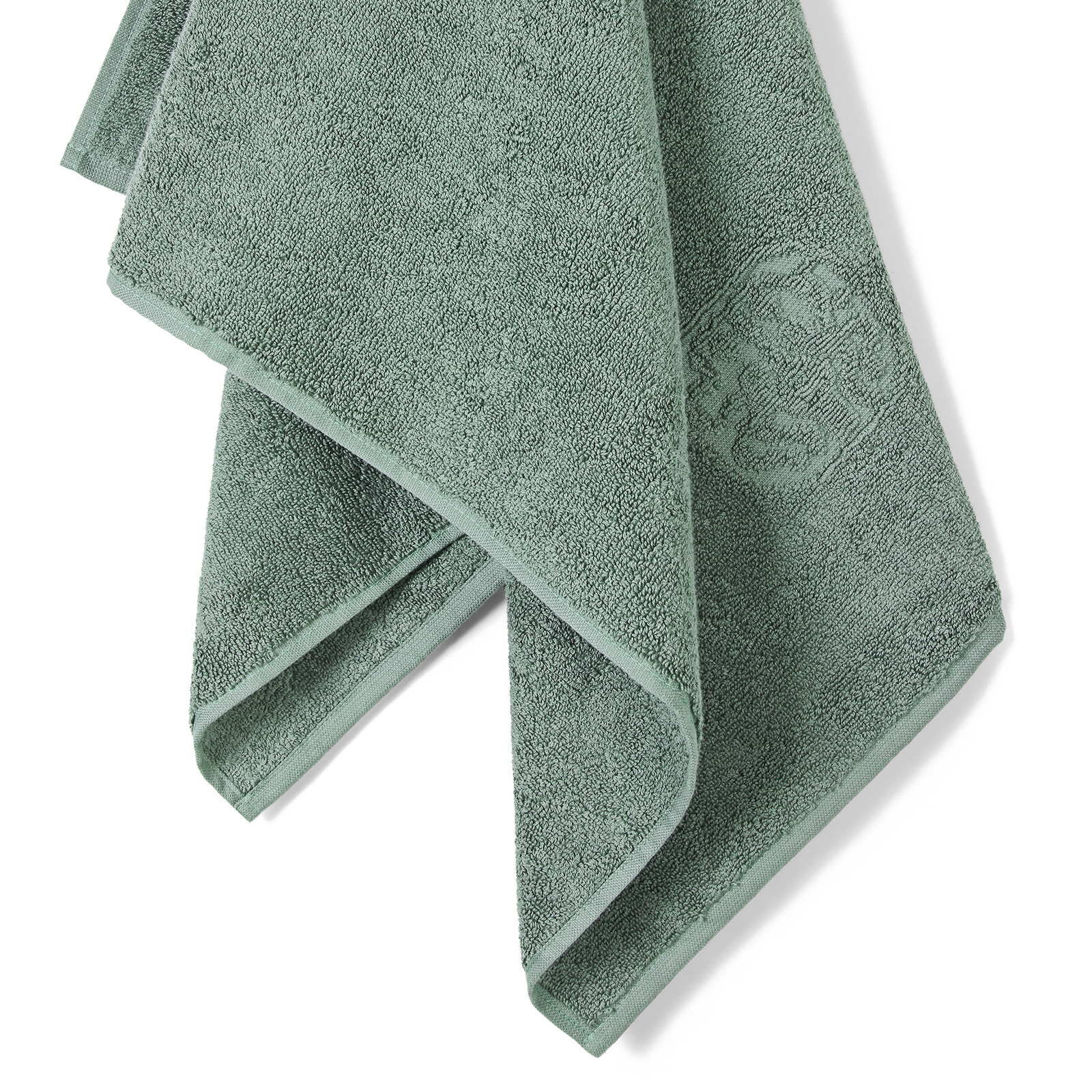 Damask Terry håndklædet har et enkelt udtryk med Georg Jensen Damasks ikoniske logo indvævet som elegant detalje. Sage Green er en kølig nuance af grøn.