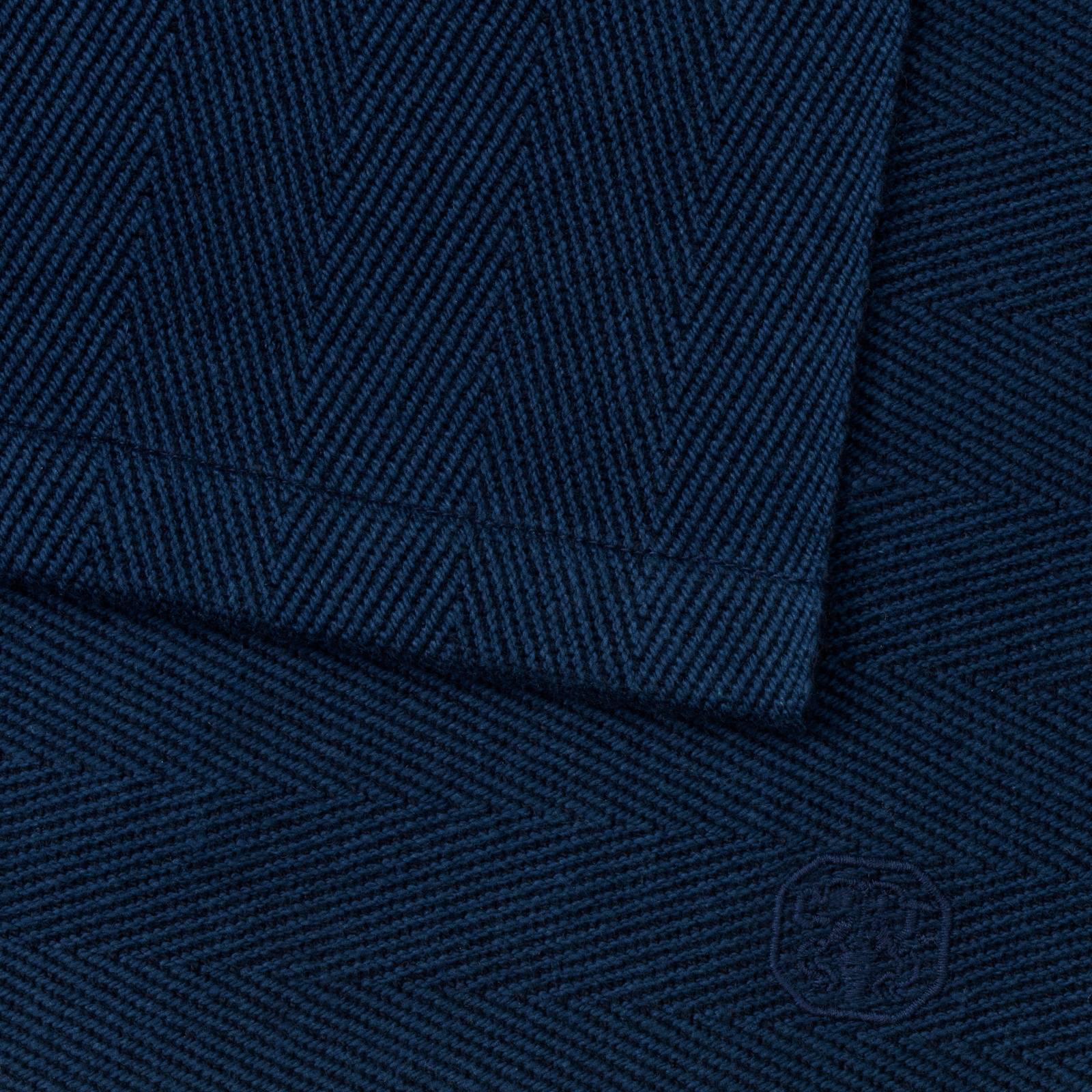 Dæk et elegant bord med Herringbone-dækkeservietterne i Dark Blue. Dækkeservietterne er vævet i 100 % kraftig bomuld. Vævemetoden giver det karakteristiske sildebensmønster og de kraftige garner får dækkeservietterne til at ligge tungt på bordet. De har et lille broderet logo i samme nuance som vævningen.