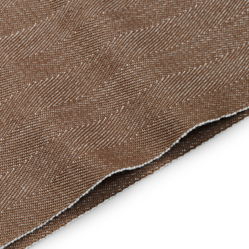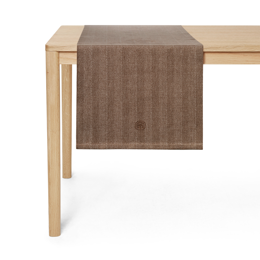 Herringbone er en sildebensvævet bordløber i 100 % kraftigt bomuld. Bordløberen ligger pænt på bordet og har et lille broderet Georg Jensen Damask-logo som signifikant detlaje. Farven Walnut er en nøddebrun klassiker på tværs af Georg Jensen Damasks kollektion.
