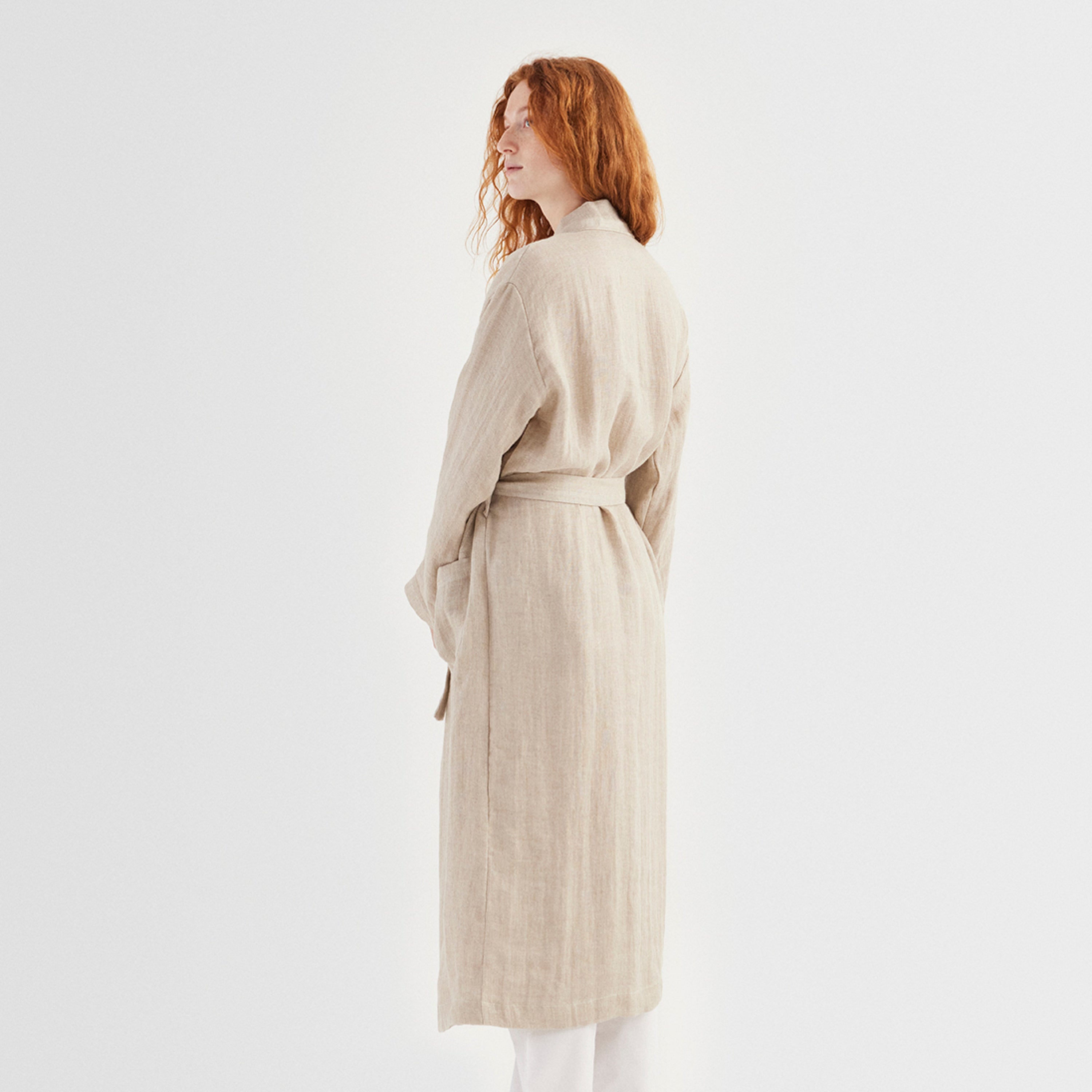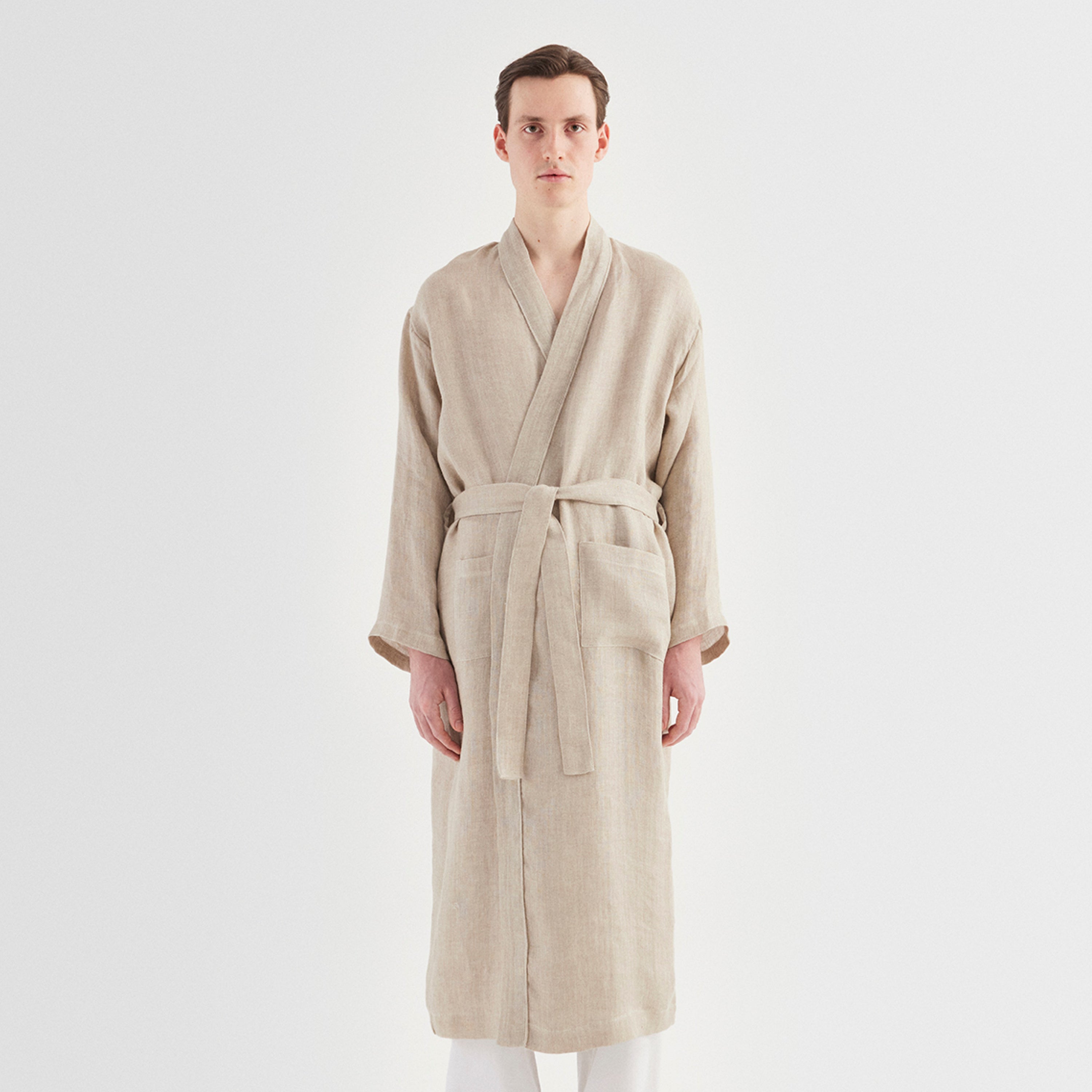 Luksuriøs hørkimono i ypperste kvalitet, som giver en særlig fornemmelse af velvære og luksus i hverdagen. Med sit klassiske snit og sin lækre tunge hørkvalitet passer kimonoen både til mænd og kvinder.