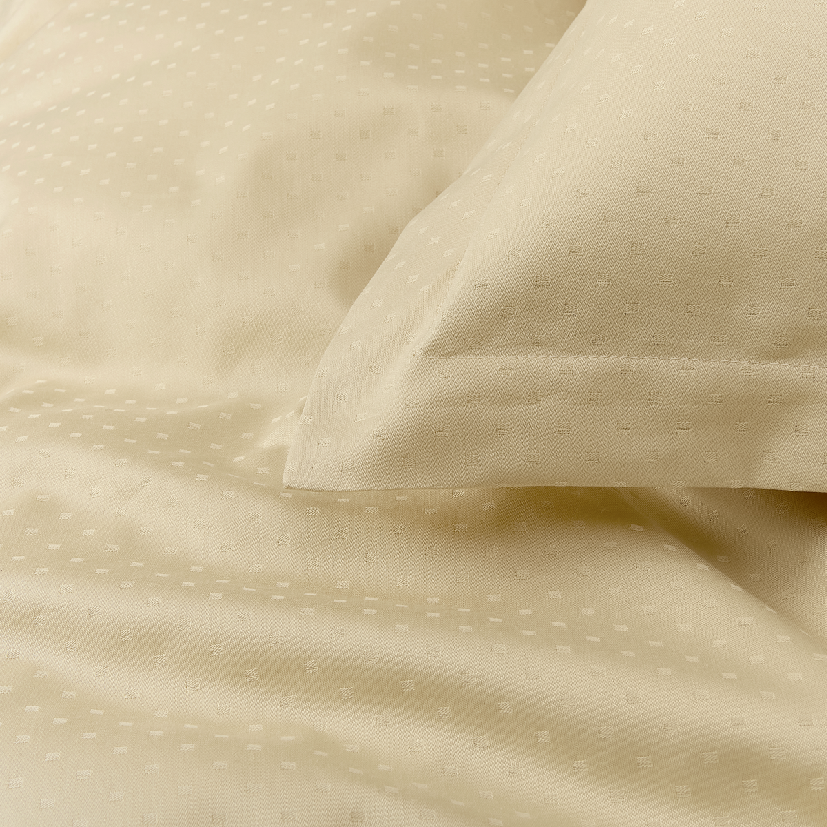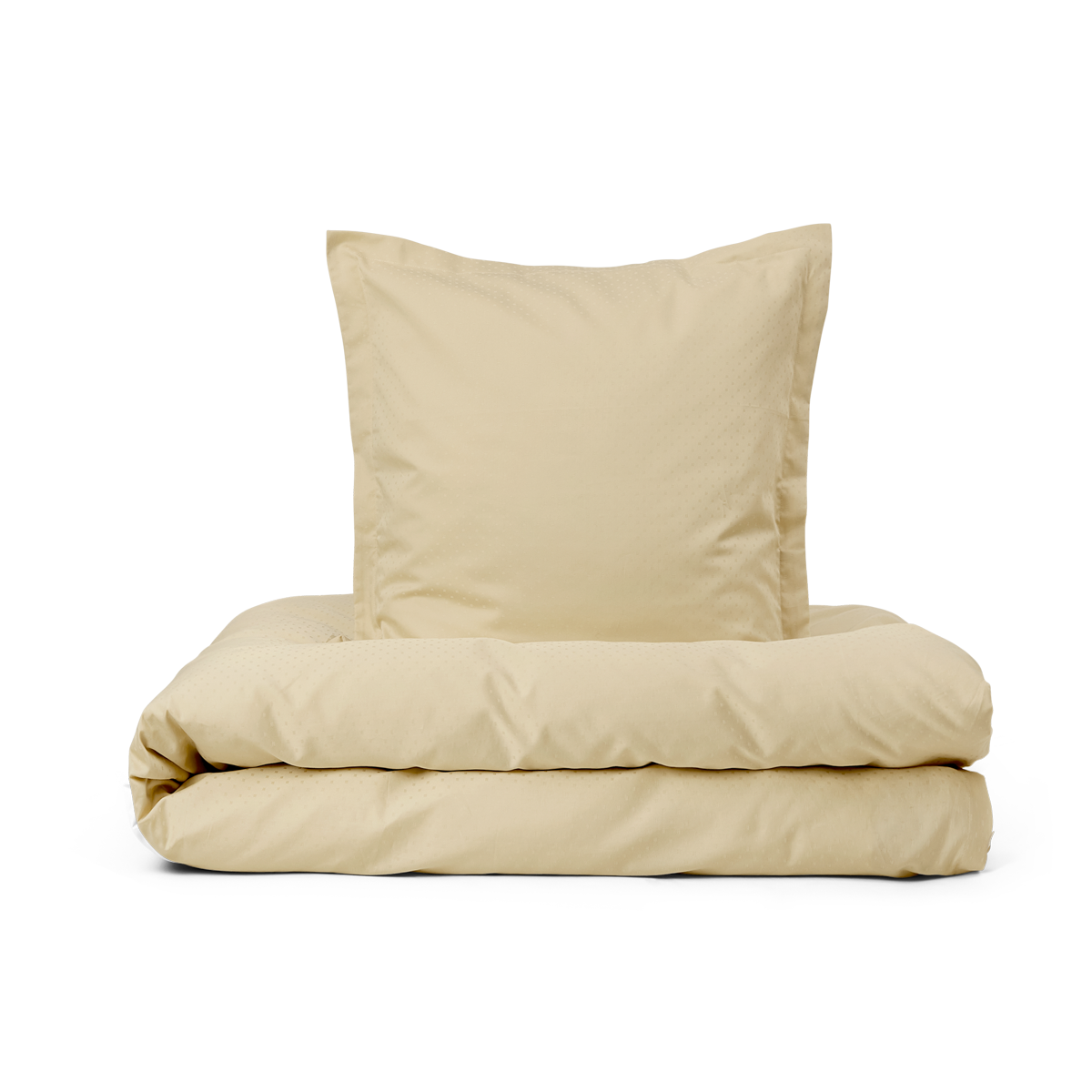 Nordlys sengetøjet har et elegant design, hvor nordlysets organiske former er oversat til et tidløst, geometrisk mønster. Wheat er en blid, lysegul nuance, der er inspireret af hvedens korngule farve.
