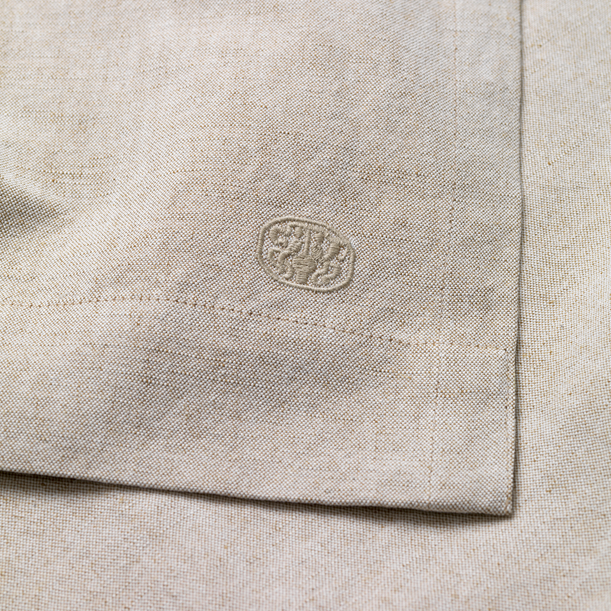 Det klassiske forklæde er vævet af en bomulds- og hørblanding. Det har et enkelt og tidløst udtryk med et lille broderet logo forneden som fin detalje.